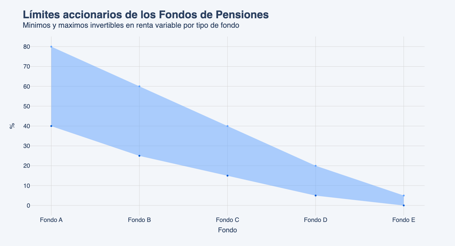 Uno de los límites estructurales principales es el nivel máximo de inversión en renta variable de cada fondo. La regla actual de niveles mínimos y máximos, además de la condición de progresividad (el porcentaje de acciones en el fondo A debe ser mayor que en el B y así sucesivamente).
