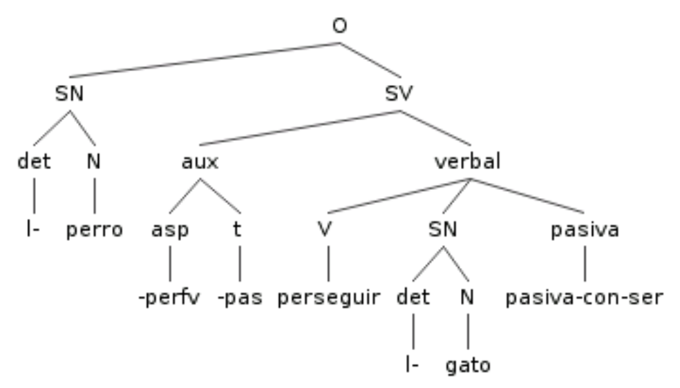 En la gramática generativa se había aprendido que dos oraciones como 'El perro persigue al gato' y 'El gato es perseguido por el perro' tienen el mismo árbol de estructura profunda (árboles se llamaban a los resultados de la aplicación de las reglas).