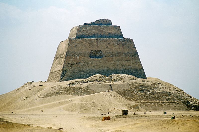 Nuestro proceso de mejora egipcio comenzó con un primer intento: la Pirámide de Meidum de Snefru. Intentaron construir una pirámide escalonada y llenar los espacios. No funcionó: