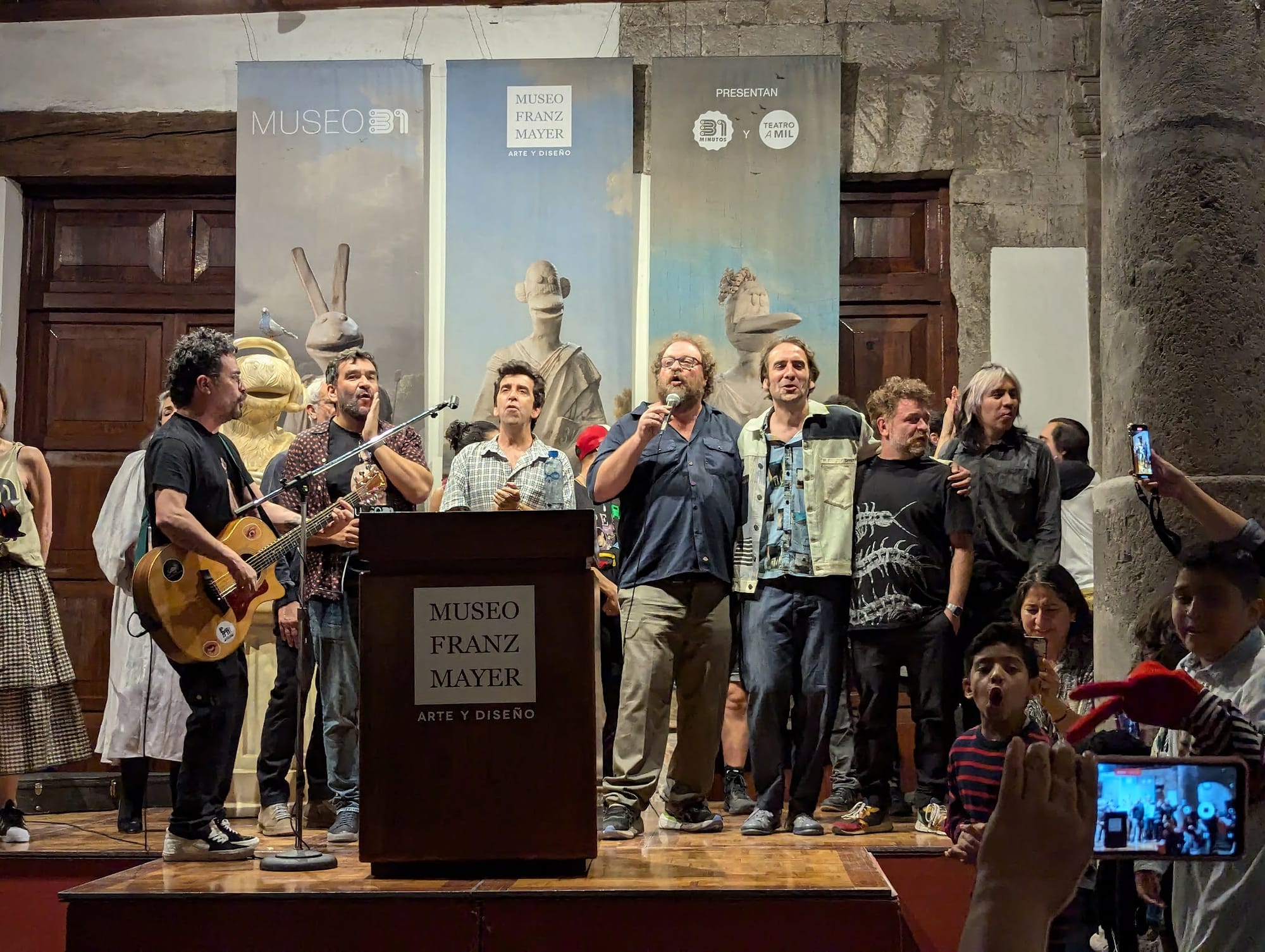 Se aburrieron mucho con las charlas de agradecimiento pero cuando terminaron por fin pudieron cantar con los creadores de 31 Minutos, que se abrazaban muy emocionados recordando viejos tiempos.