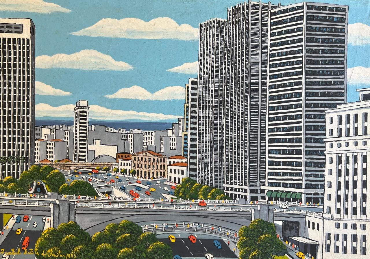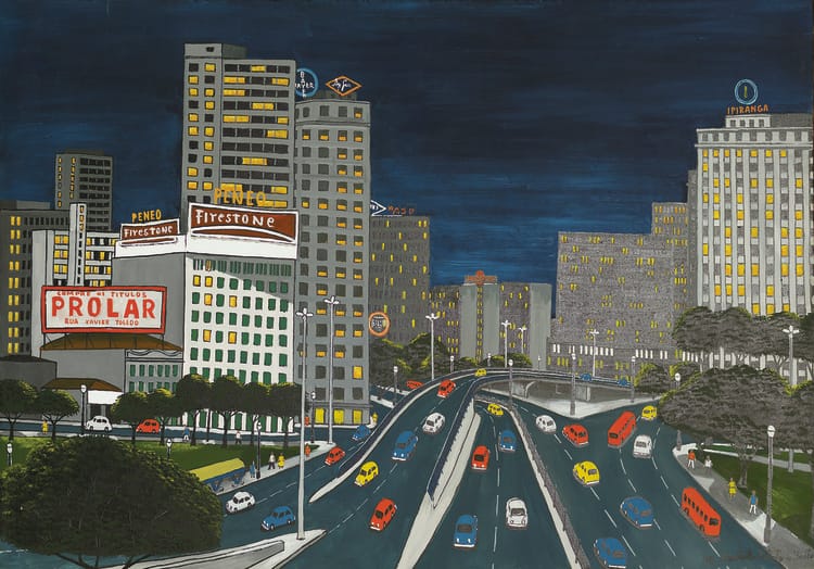 La pintura le trajo reconocimiento a Agostinho, que pudo tener su primera expocisión individual en el mismo MASP a los 25 años. Su estilo, entre naïf y primitivista, capturaba algo de la ciudad que una simple postal no podía lograr. El caos y la densidad de la megalópolis, pero también sus colores y su inmensidad.