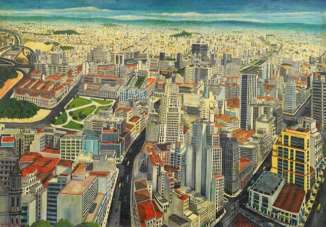 La pintura le trajo reconocimiento a Agostinho, que pudo tener su primera expocisión individual en el mismo MASP a los 25 años. Su estilo, entre naïf y primitivista, capturaba algo de la ciudad que una simple postal no podía lograr. El caos y la densidad de la megalópolis, pero también sus colores y su inmensidad.