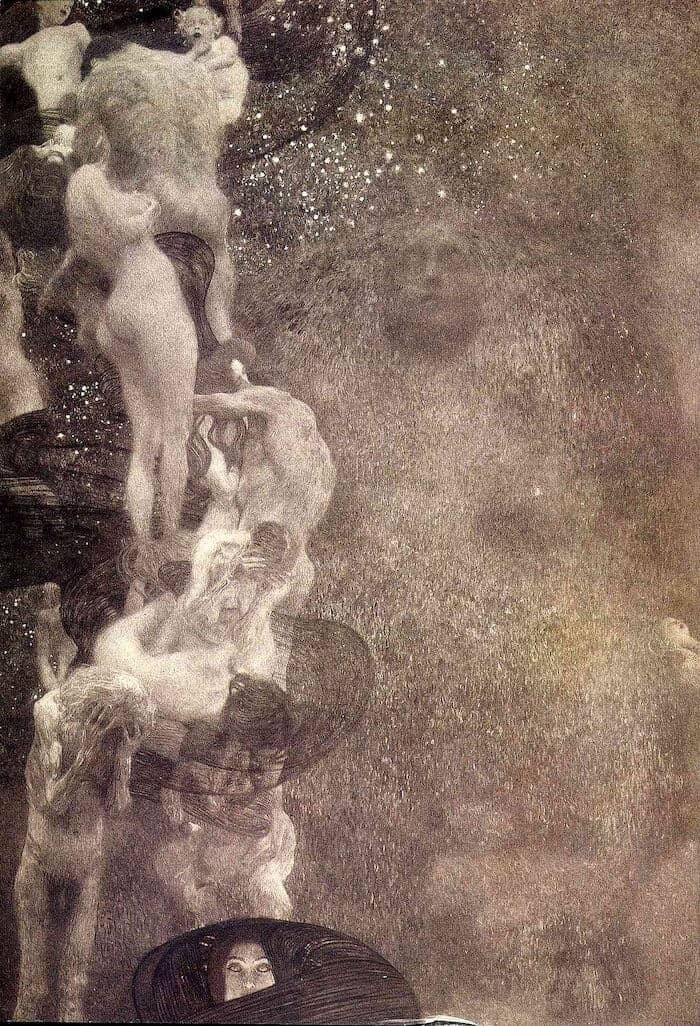 Pero claro, Klimt tenía que seguir pagando las cuentas, así que tomó el último encargo: un tríptico de la Filosofía, la Medicina y la Jurisprudencia para la Universidad de Viena.