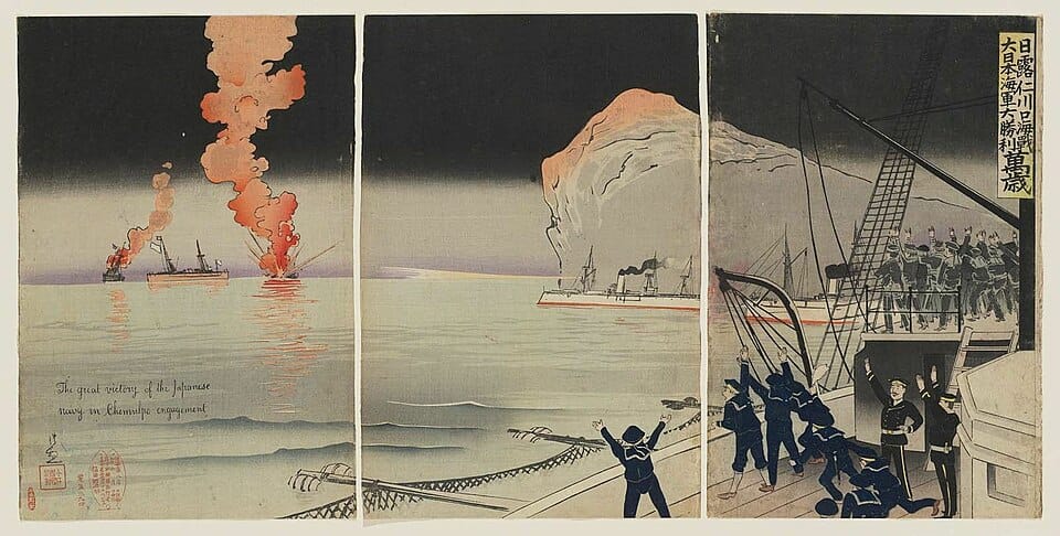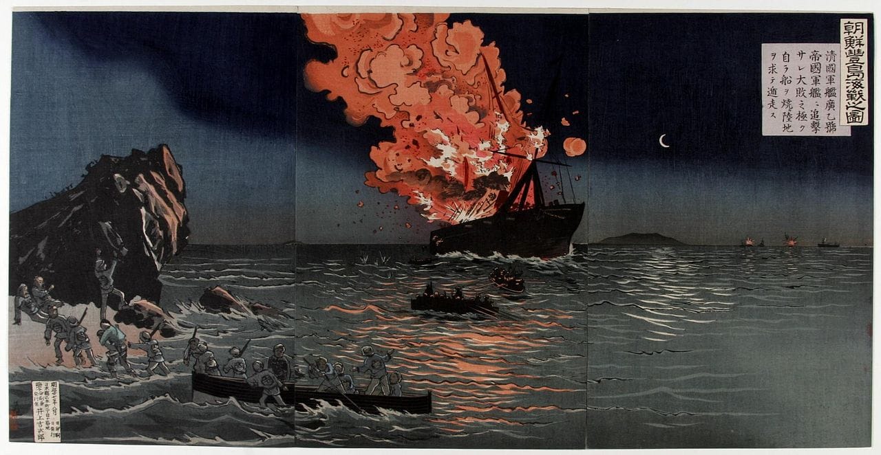 Pero el destino le tendría preparada una última racha de fama. En su afán por dominar la península de Korea, el Imperio Japonés y la Dinastía Qing se enfrascaron en la primera Guerra Chino-japonesa. Y la habilidad de Kiyochica para mezclar momentos históricos con su habilidad para dibujar caricaturas, le sirvió para vender una serie de dibujos sobre la guerra.