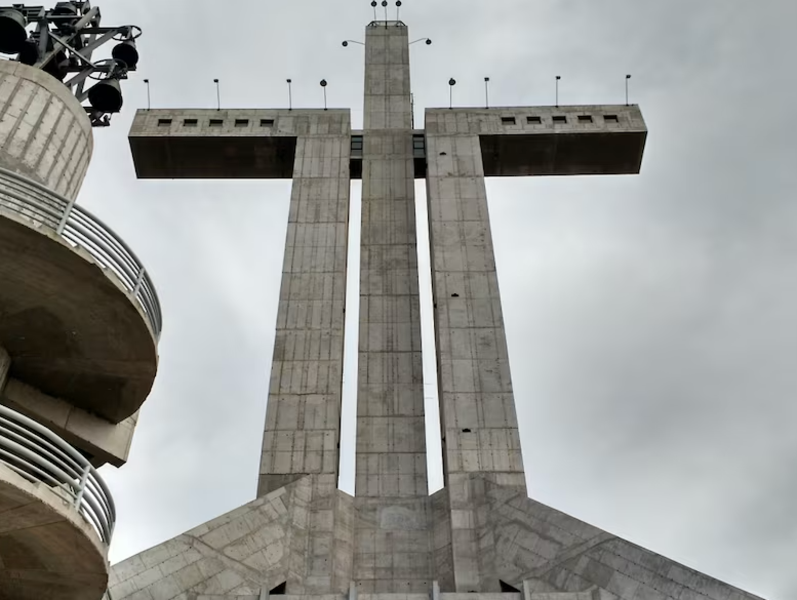 Brutalismo: de izquierda a derecha: Habitat 67 en Montreal, la Biblioteca Roberts en Toronto y el Santuario mariano di Monte Grisa en Trieste.