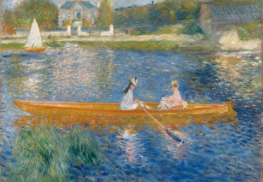 Un buen local a orillas del río, diríamos hoy. Pero sigamos río abajo hasta llegar a otro buen local a orillas del río Sena, ahora acompañados de Renoir y su buen amigo Claude Monet. A ambos les encanta pintar al aire libre, y lógicamente, en verano.