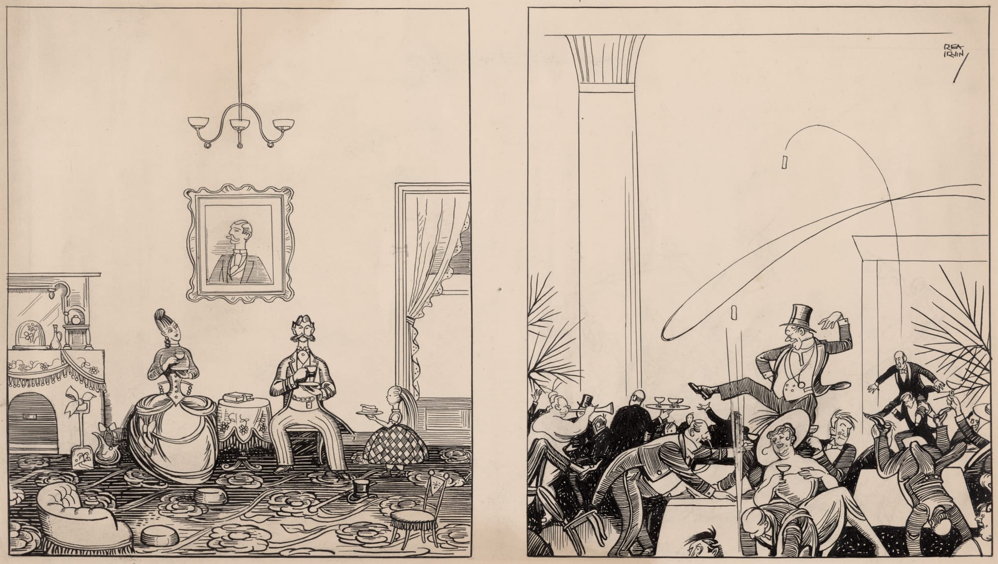 Algunas caricaturas de Irvin riéndose de la créme de la créme neoyorkina.
