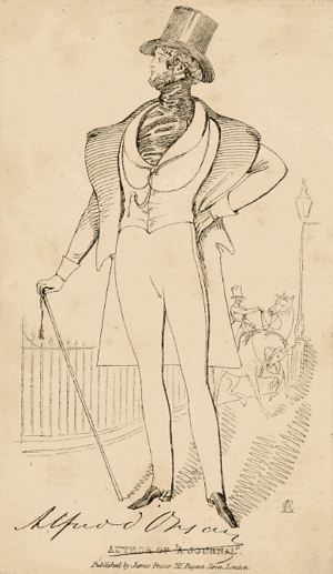 Irving quería reflejar los valores y las ideas que la revista buscaba transmitir. Encontró inspiración en la Enciclopedia Británica, específicamente en una imagen del Alfredo, Conde de Orsay.