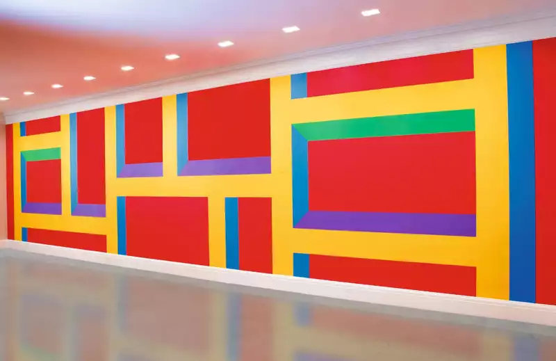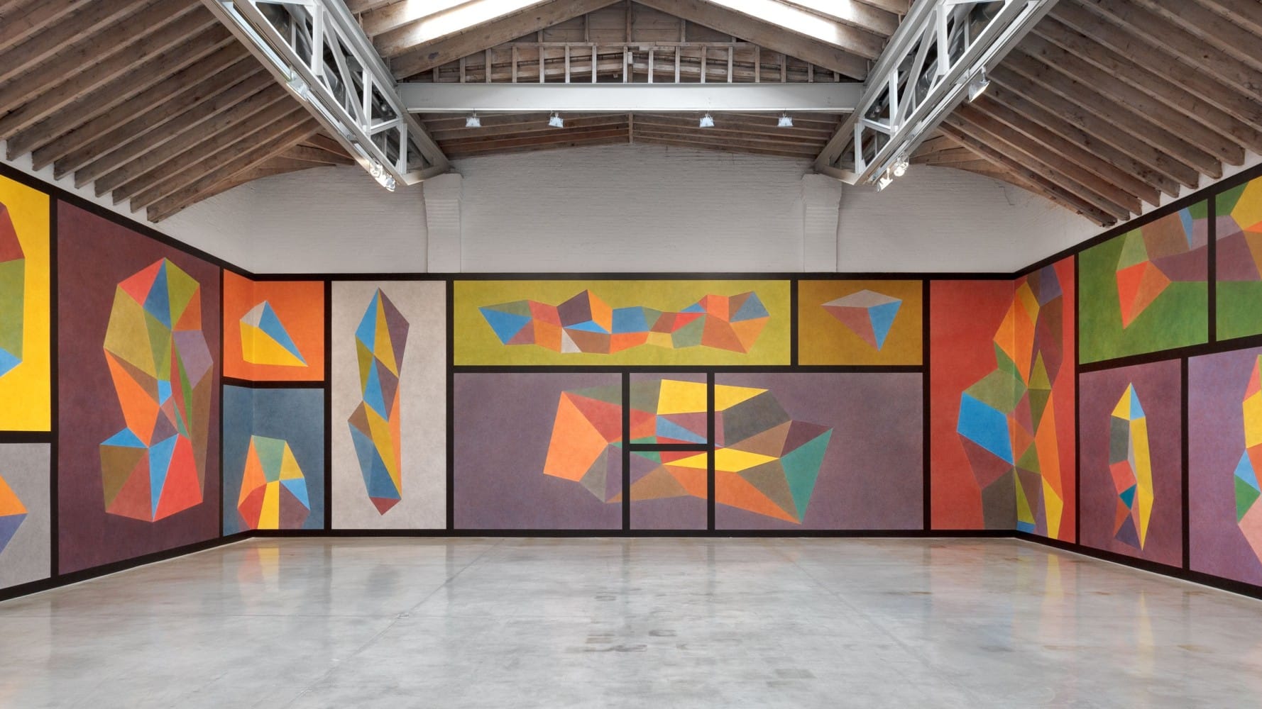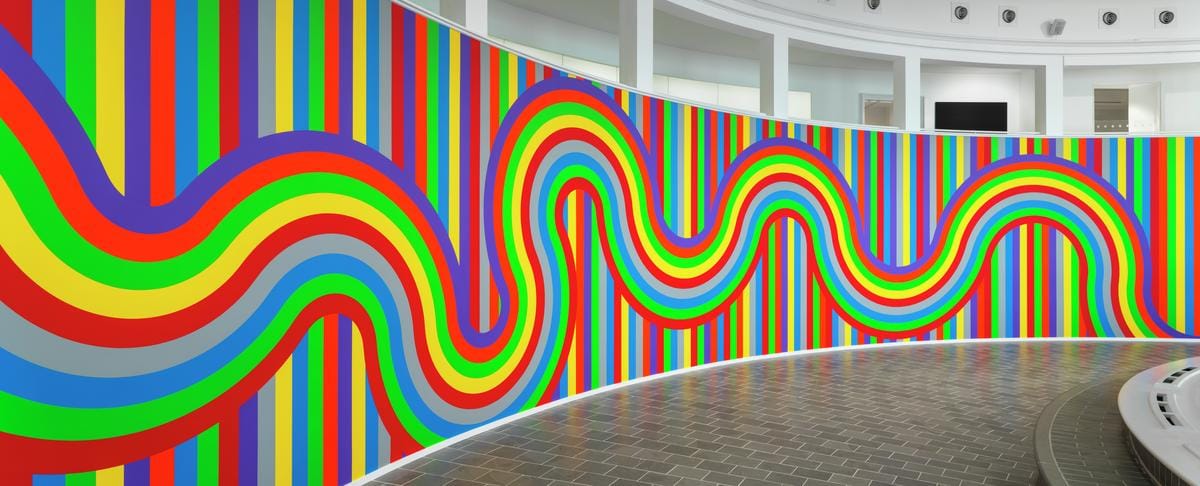 Pero LeWitt también "pintaba". Lo pongo entre comillas porque muchas veces, él solo hacía el esquema y contrataba un equipo de artistas que lo ayudaban a ejecutar sus pinturas. Donde más ayuda necesitaba, era en sus murales, de los que se hicieron más de 1.200, e incluso después de su muerte en 2007 se han seguido pintando. Por eso, lo más probable es que si te topaste con "un LeWitt", haya sido en un formato así: