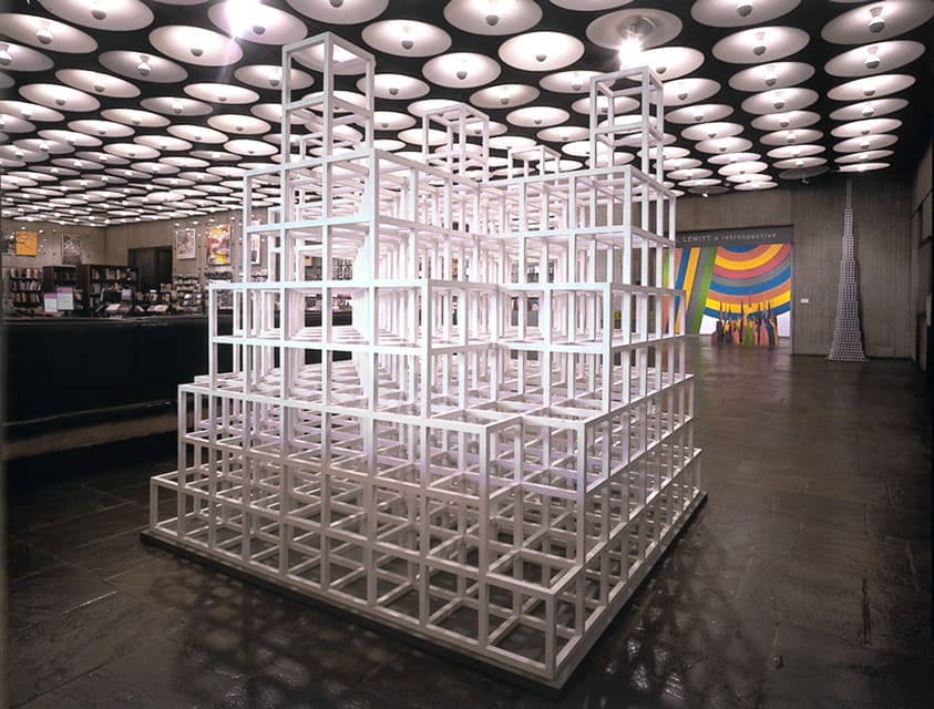 En los 60, LeWitt partió armando estructuras (no le gustaba el término "escultura", algo que dice bastante de su concepción artística). Se trataba principalmente de cubos y formas geométricas. Al principio se trataba de formas lineales revestidas o rellenadas, pero pronto se dio cuenta de que lo que más le gustaba, era dejar los esqueletos de las estructuras al descubierto.