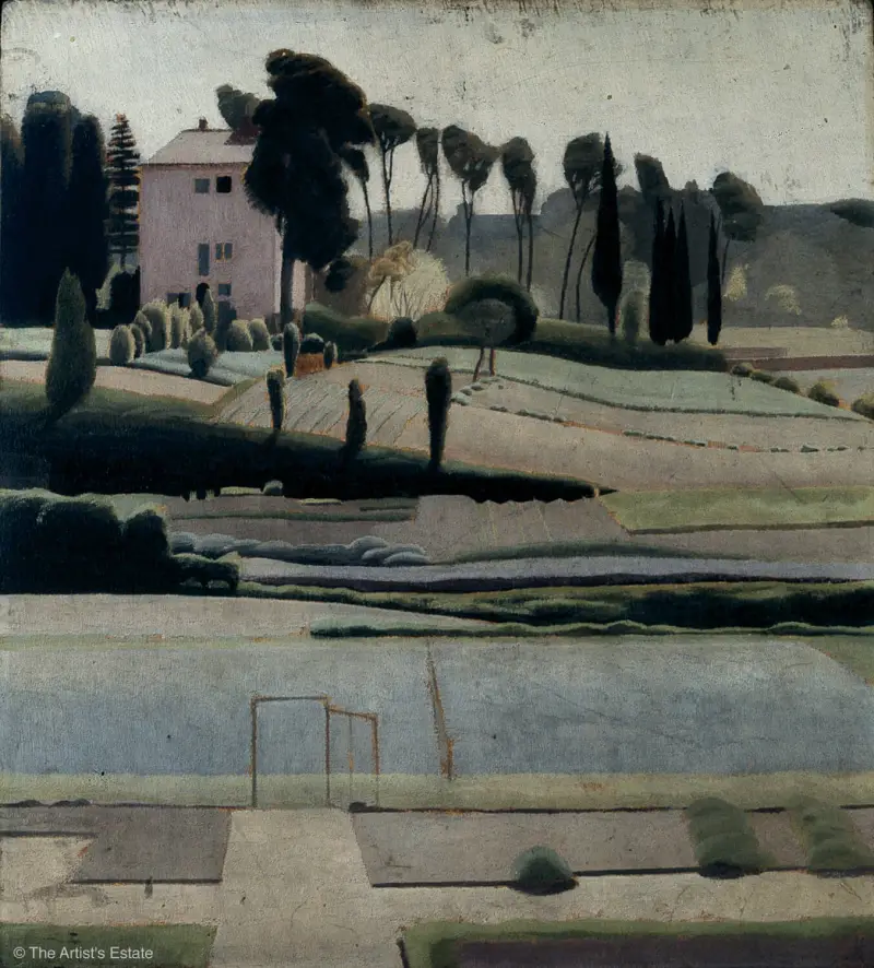 Este paisaje sacado directamente del renacimiento –o al menos eso debe haber sentido ella– le permitió pintar algo más que figuras estilizadas a lo quattrocento: de esa época viene su escasa pero significativa etapa de "paisajes italianos".