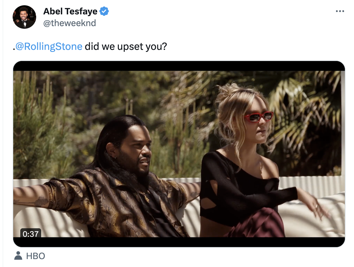 The Weeknd respondió a la entrevista de Rolling Stone que reunía estos testimonios con el siguiente tweet: una escena de la serie donde llaman a la publicación desfasada e irrelevante.