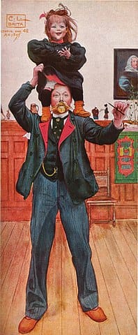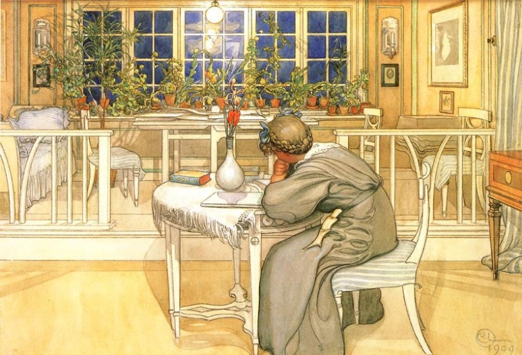 O tal vez fue una manera de escapar a su propia infancia: Larsson nació en un barrio pobre de Estocolmo en 1853 y las vio bastante difíciles. En su adolescencia logró que lo aceptaran en la academia de artes de sueca, y mientras aprendía el oficio trabajó como caricaturista para el periódico humorístico Kasper y como artista gráfico para el Ny Illustrerad Tidning.