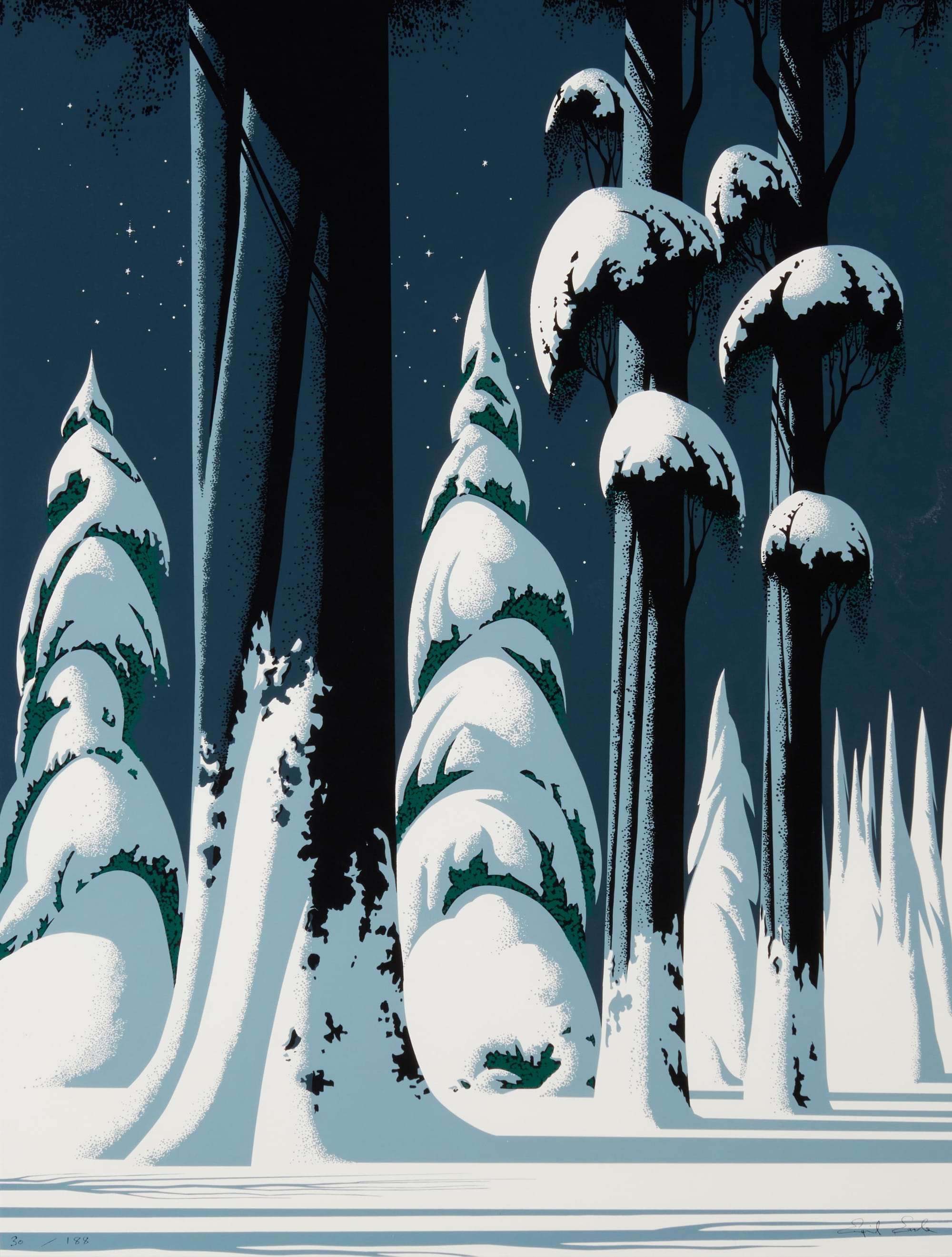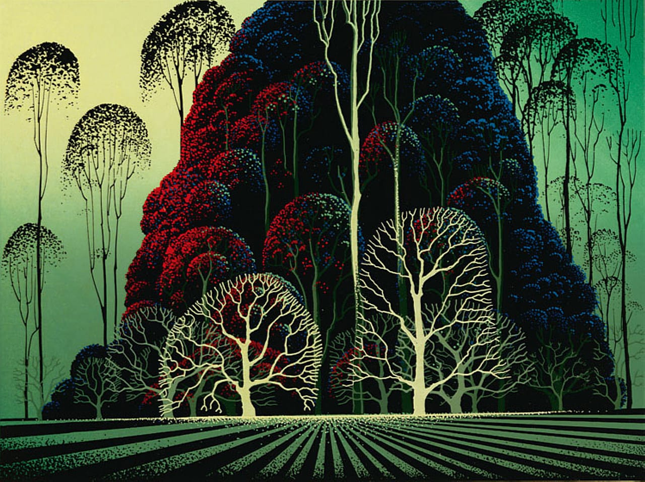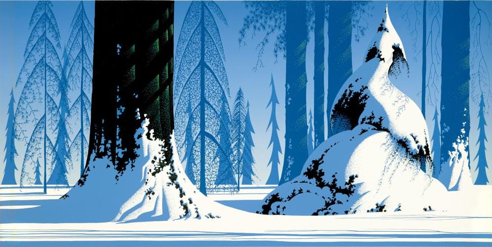 Partamos por su temática favorita: los bosques. Los tiene de todo tipo: encantados, nevados, bucólicos, pastoriles, tenebrosos.