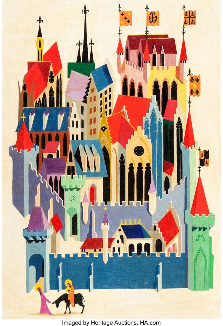 Hasta el momento solo te he mostrado fondos de películas y algunos detalles de un juego, pero Earle dejó tras de sí un montón de ilustraciones que te llevan rápidamente a esa primera vez que viste una película de Disney de los años cincuenta.