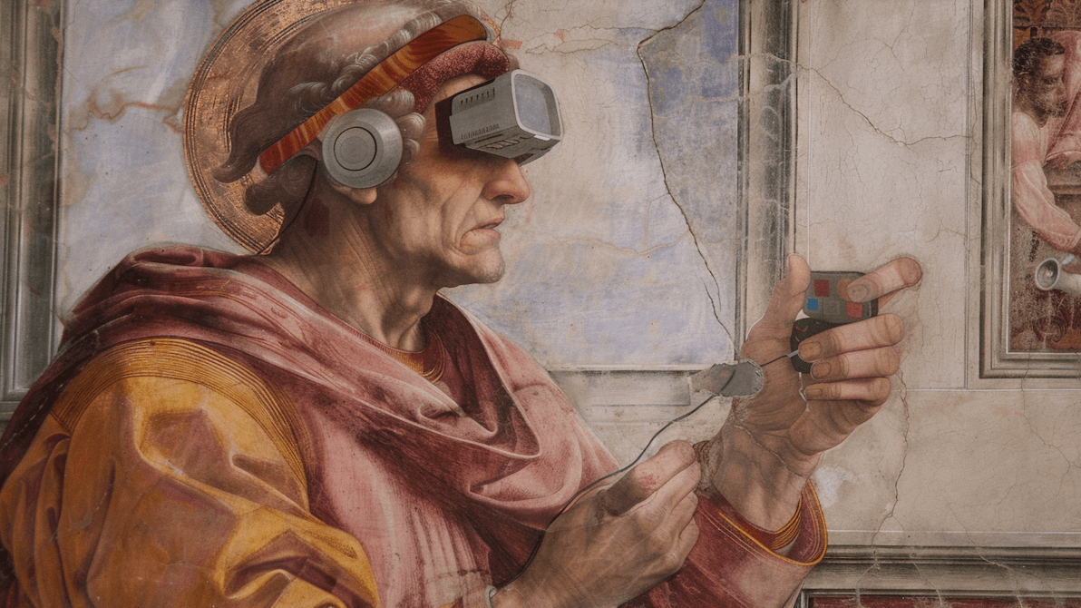 Lo mismo para un post sobre un videojuego: nada como incorporar un poco de tecnología anacrónica en una pintura renacentista, te sientes un poco como Duchamp interviniendo la Mona Lisa.