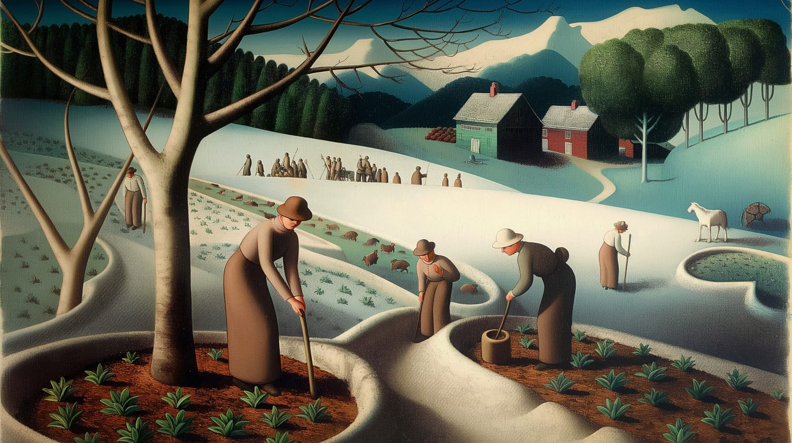 En esta pintura se pueden ver las obsesiones y temáticas principales de Wood: el Midwest –o medio oeste– americano. Una zona de Estados Unidos que se caracteriza por las plantaciones de trigo y maíz, unas vistas que no terminan nunca –porque no hay montañas, algo que siempre le llama la atención a los chilenos– y porque la gente es sencilla, religiosa y amistosa, o bien pueden ser testarudos y desconfiados.
