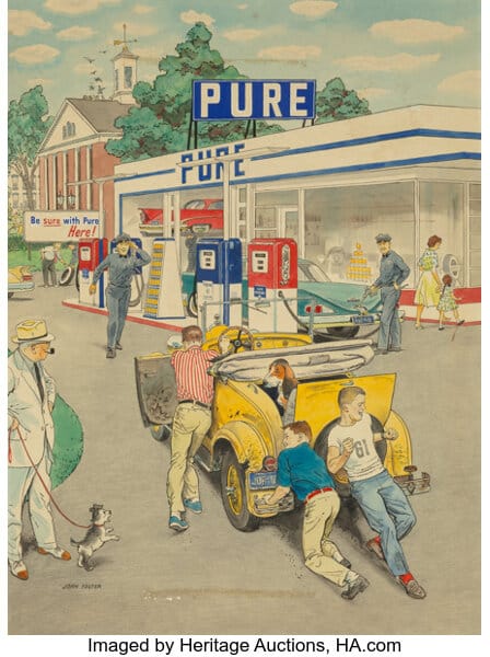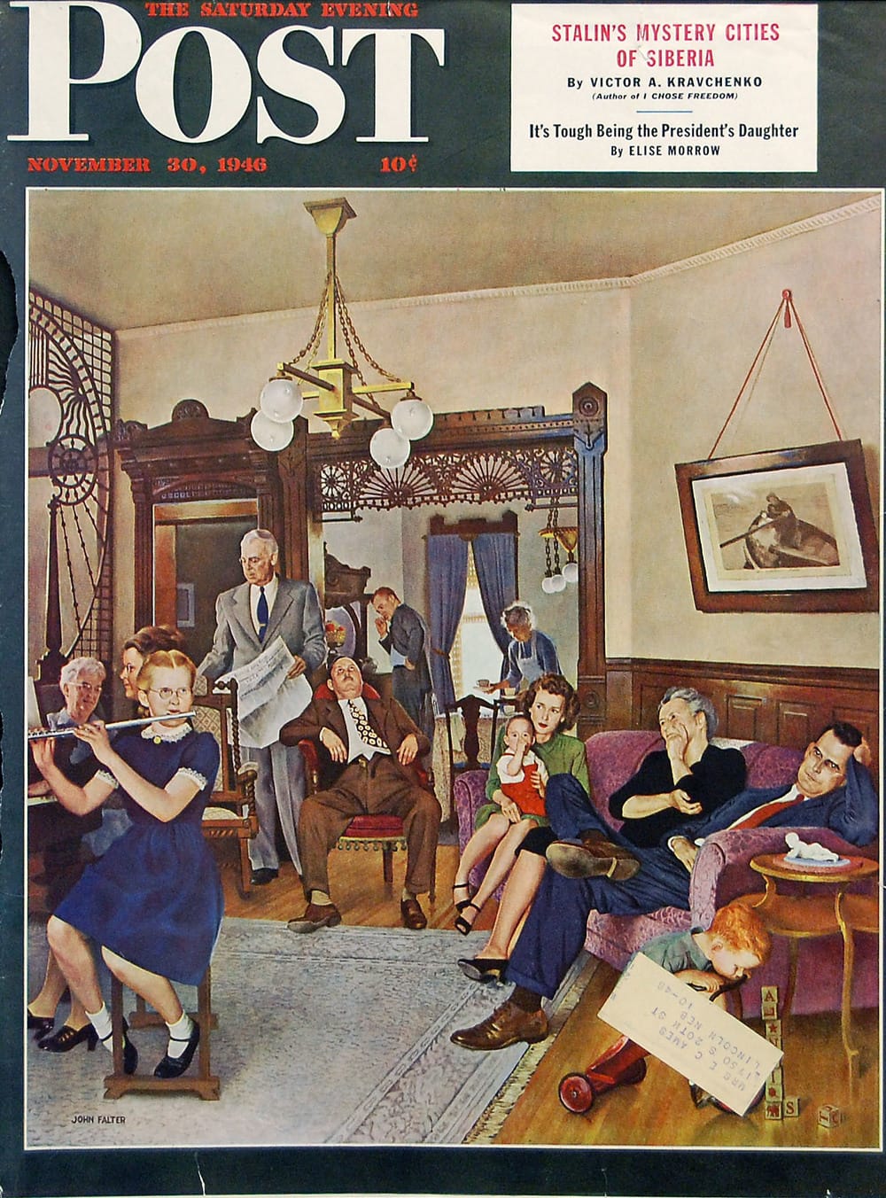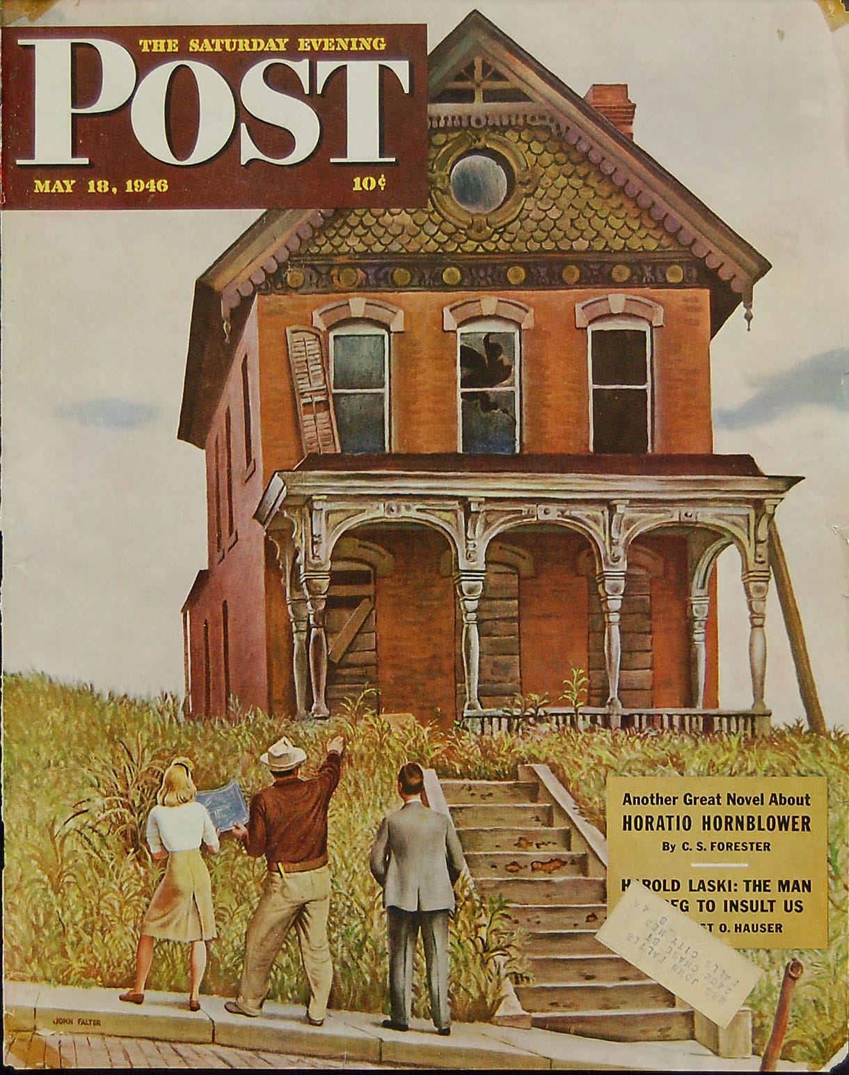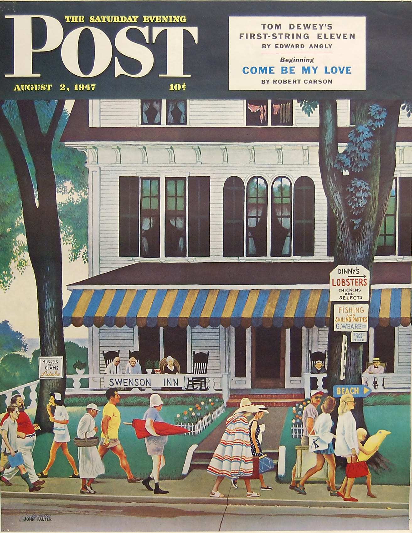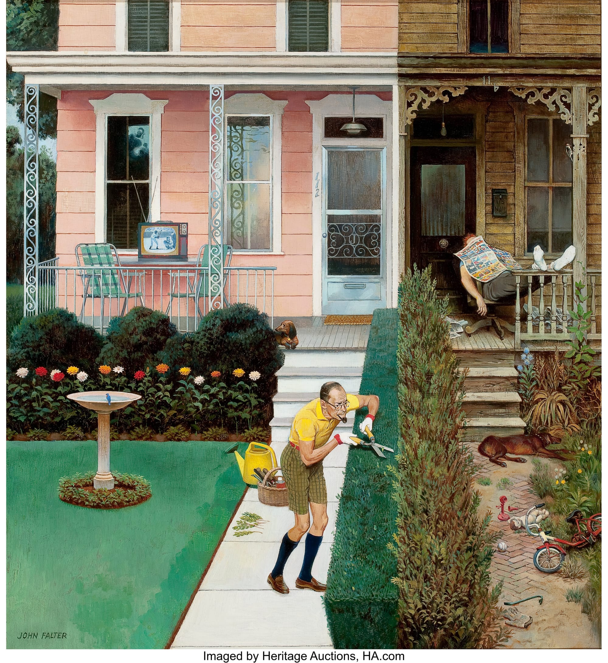 John Falter –como solía firmar sus pinturas– fue un dibujante nacido en Nebraska en 1910. Al poco tiempo su talento haciendo caricaturas e ilustraciones le valió ganarse una beca para estudiar en Nueva York. Duró un mes: encontró que estaba demasiado lleno de comunistas para su gusto. Así que se volvió a su natal Nebraska.