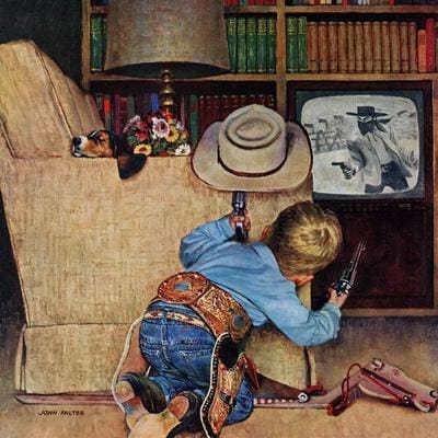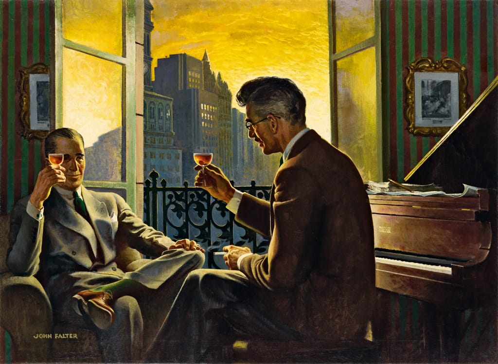 Eso sí, las imágenes quedarían. Había algunos pintores un poco más melancólicos y sombríos, como Edward Hopper, o las que eran pura americana, como Norman Rockwell. Hace poco descubrí –aunque descubrir es una palabra poco apropiada, porque todos nos cruzamos con sus imágenes en algún momento– a John Philip Falter.