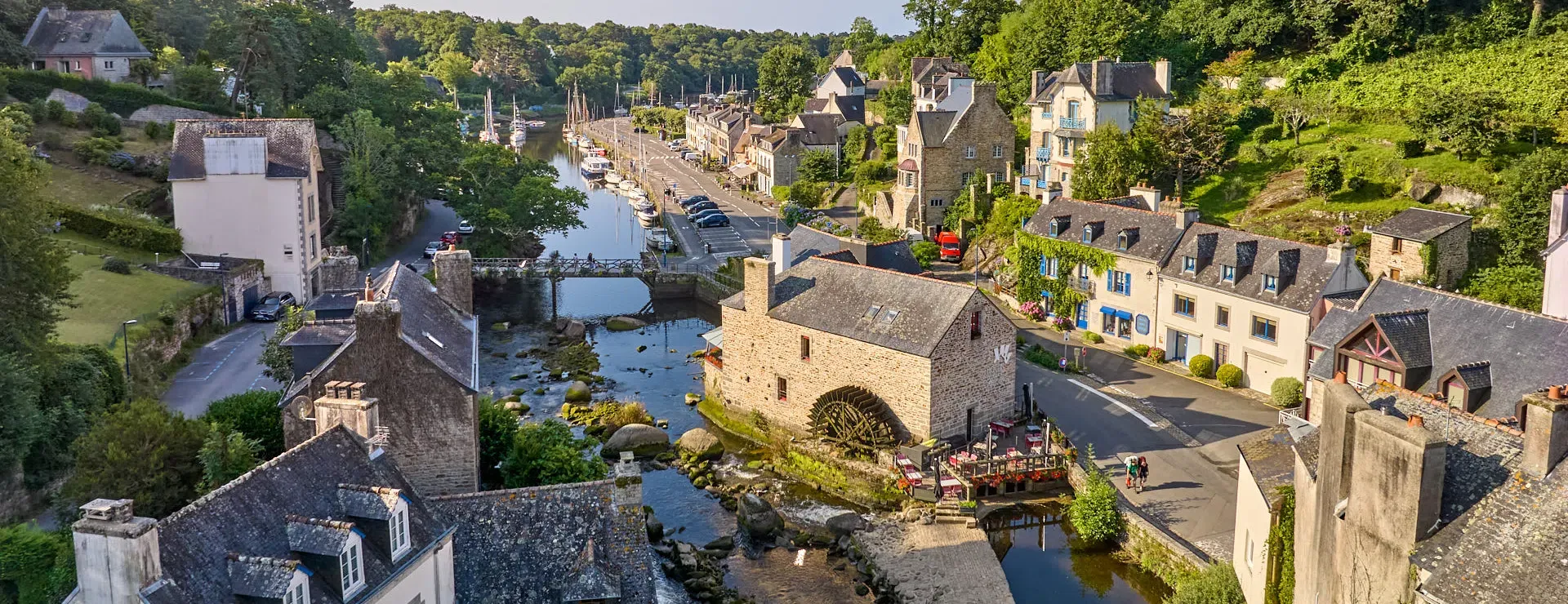 Arriba, Pont-Aven, campiña francesa. Abajo, algunos de sus cuadros de aquella época.