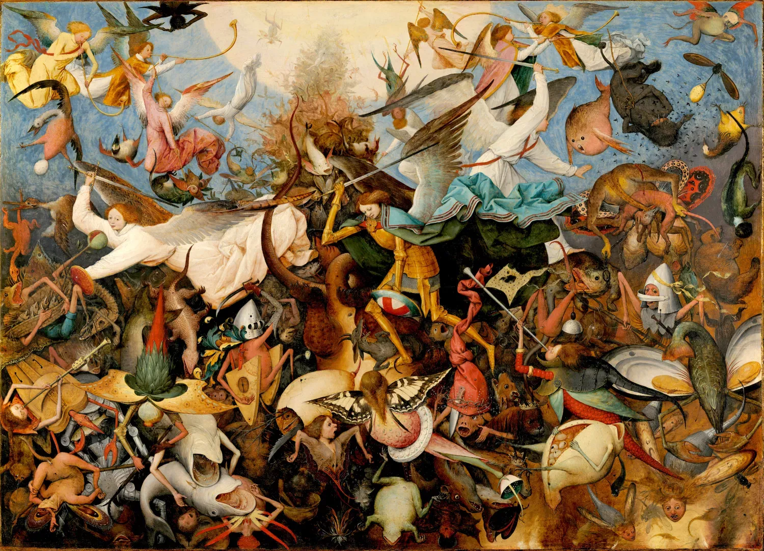Aunque para ser honestos, igual un par de cuadros religiosos pintó. Pero siempre lo hizo con un toque especial, que le debe haber puesto los pelos de punta a más de un curita. Tómese por ejemplo el despelote total del cuado La caída de los ángeles, o el edificio a punto de caerse en La Torre de Babel. O mi favorito: el carrete apoteósico de El combate entre Carnaval y Cuaresma.