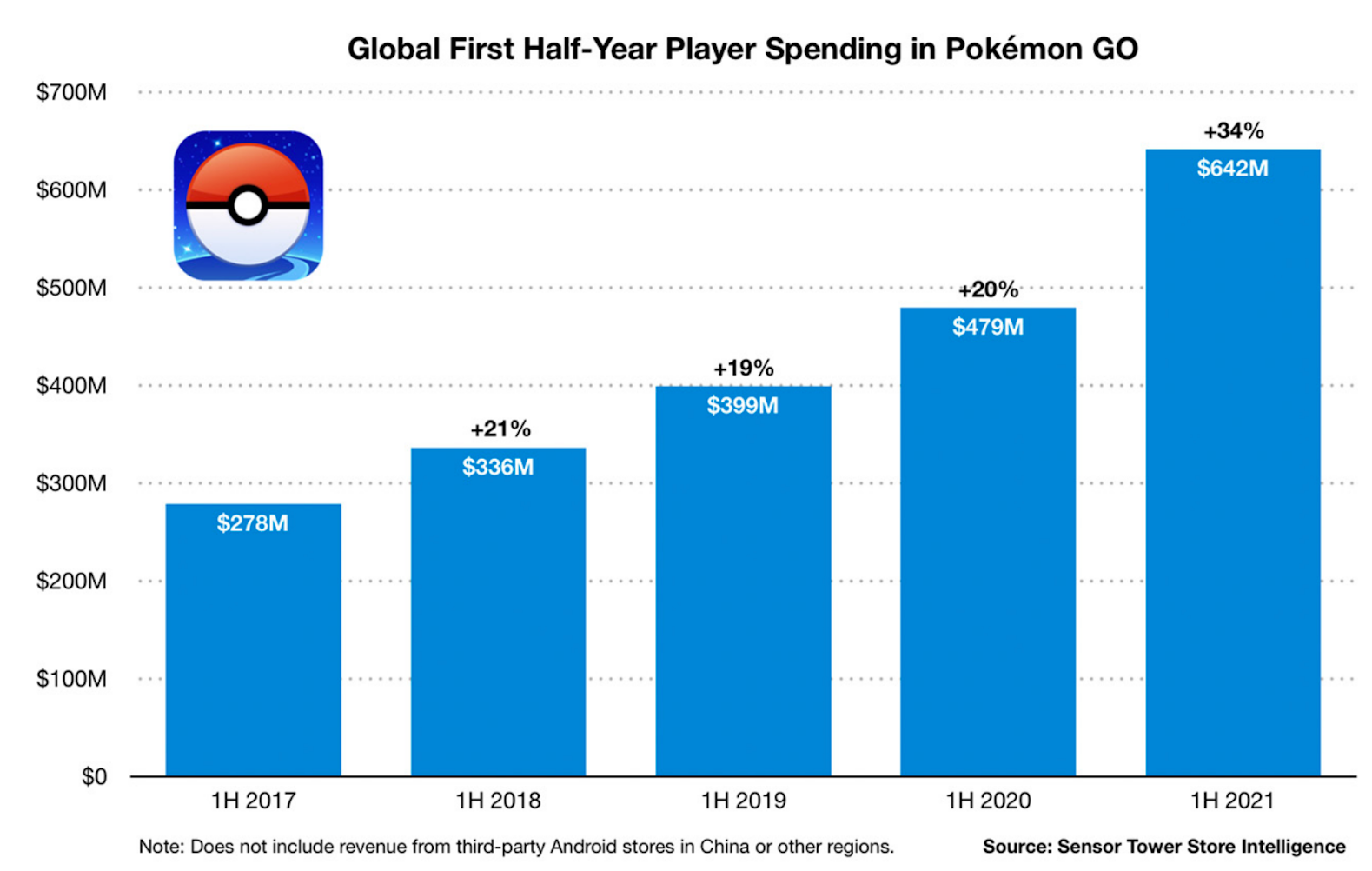 Pokémon GO ha ganado 641,6 millones de dólares durante la primera mitad de 2021. Y si hablamos de sus ingresos, estos aumentaron 34% desde el primer trimestre de 2020 y un 130% desde el primer trimestre de 2017.
