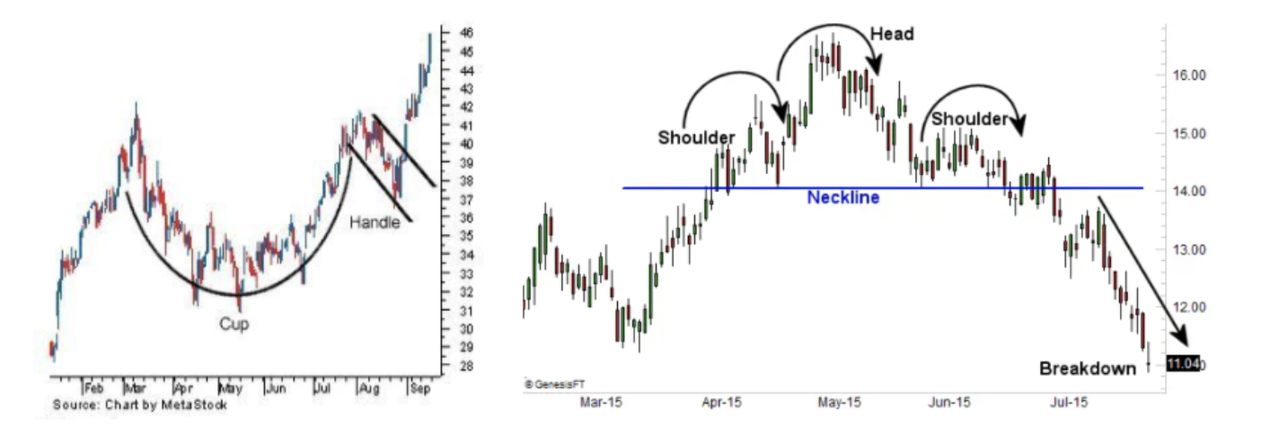 Muchos de los patrones típicos del análisis técnico se basan en nuestra tendencia a ver objetos. Por ejemplo, una figura de “Hombro-Cabeza-Hombro” es considerada negativa, mientras que una figura de “Taza y asa” es considerada positiva.