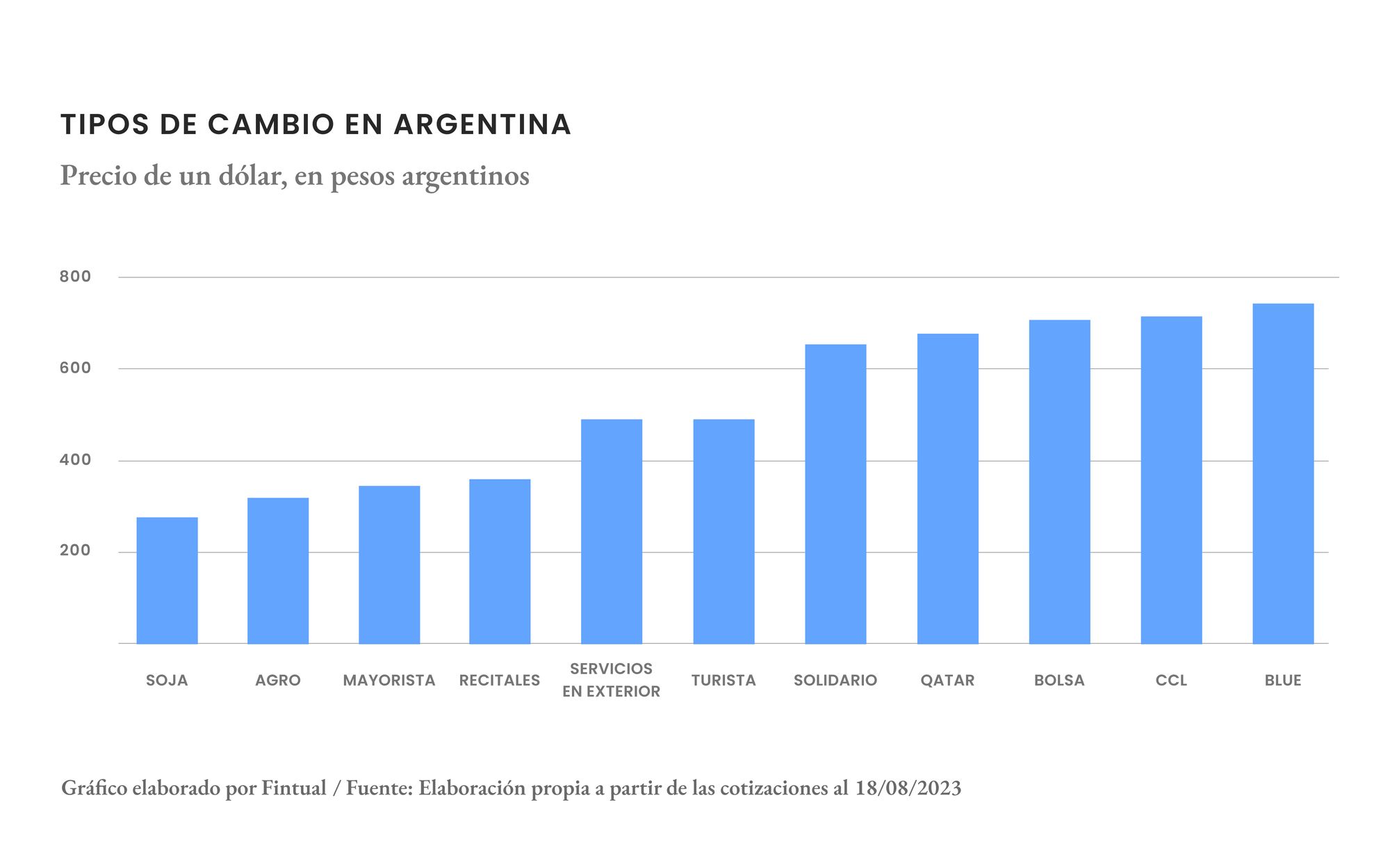 Pero la historia con el tipo de cambio en el país vecino es todavía más compleja que eso. En realidad, en Argentina existen más de 15 tipos de cambio distintos.
