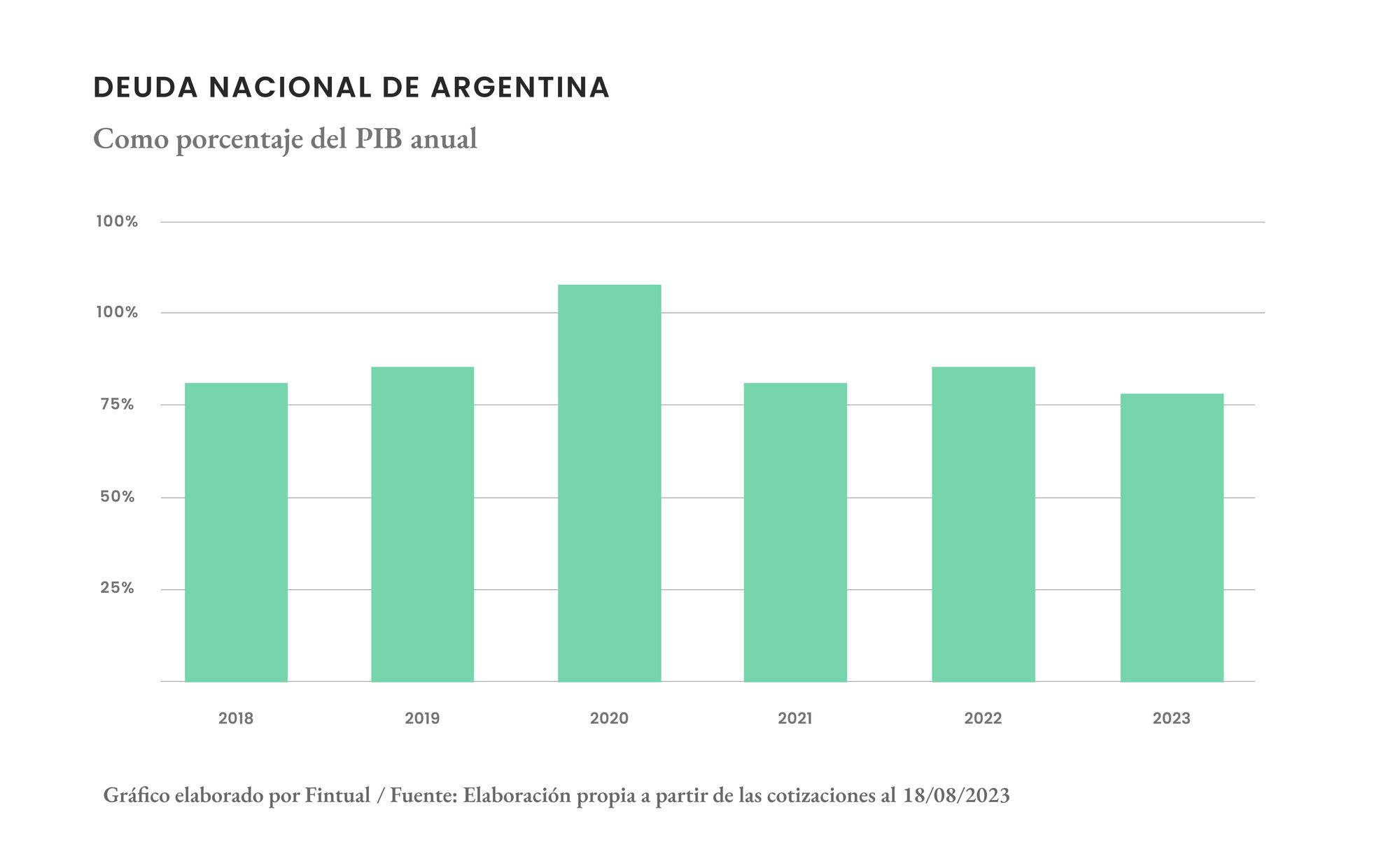 Argentina tiene ambos tipos de deuda, y en realidad no es de las más altas del mundo. En 2022 fue de un 84,5% de su PIB (Producto Interno Bruto, el indicador de cuánto produce un país), mientras que en Japón fue de 255%, Estados Unidos de 126% e Italia, de 144%.