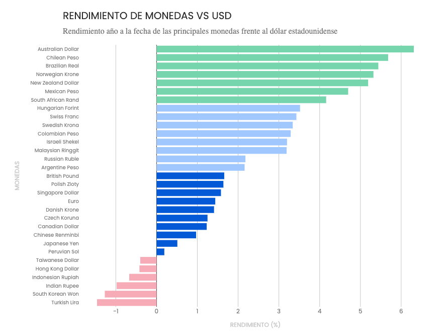 Aunque se han mostrado particularmente volátiles las últimas semanas, los mercados globales acumulan retornos positivos en lo que va del año. Al mismo tiempo, el dólar sigue relativamente depreciado comparado con la mayoría de las monedas del mundo, incluido el peso chileno.