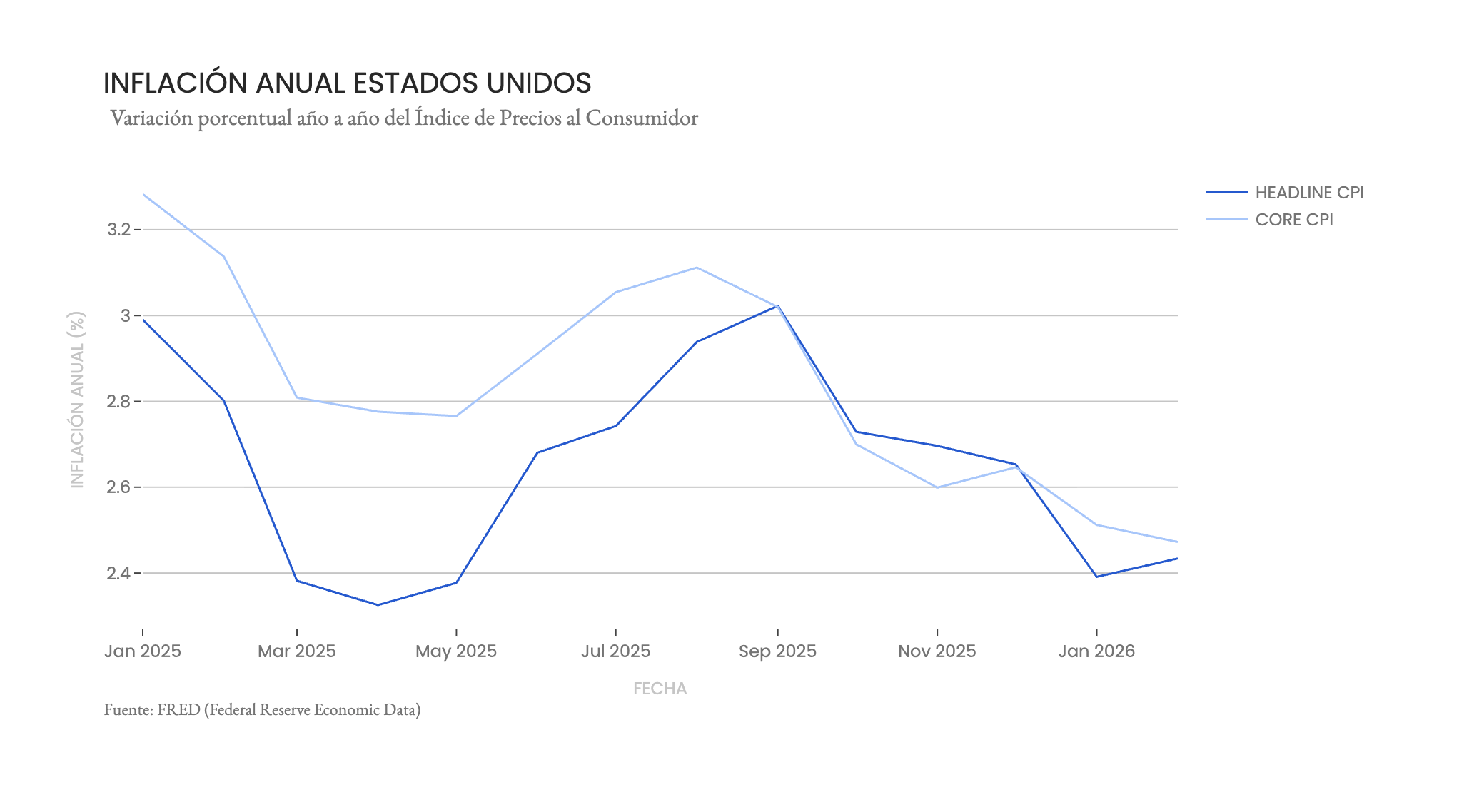 El miércoles se publicó la inflación del mes de febrero en Estados Unidos. El dato mensual fue 0,27% para headline y 0,22% para core, en línea con las expectativas del consenso. La inflación anual llegó a 2,43% en la medida general (headline) y a 2,47% en la subyacente (core), aún por encima de la meta de 2% de la Fed.