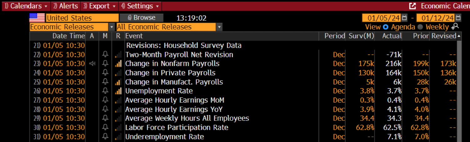 Cerró un mes (y un año) muy positivo, y los primeros días de 2024 llegaron con alta volatilidad. Los mercados han tenido un par de días de mala rentabilidad, en parte porque siguen calibrando el momento en que la Fed pudiera comenzar a recortar sus tasas: hay amplio consenso en que las tasas bajarán, pero la incógnita del inicio (que si marzo, que si mayo) causa volatilidad.