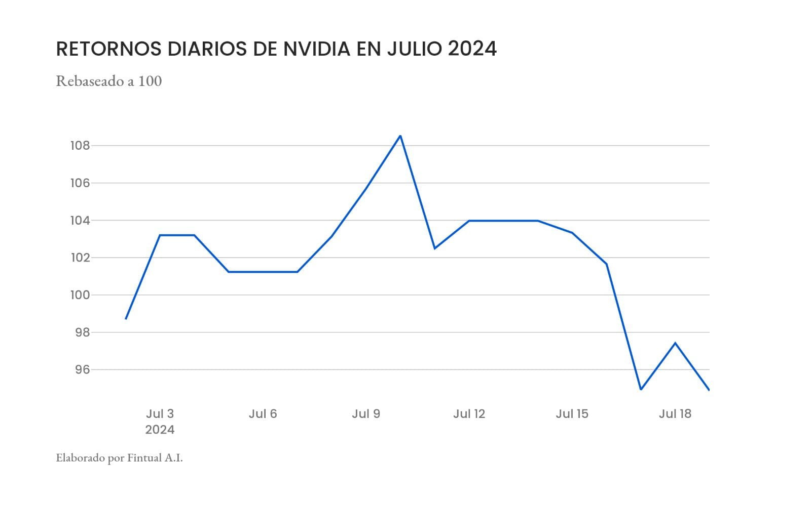 Los mercados partieron con el pie derecho en el mes de julio, y la semana que cerró el 12 de julio sumó otra semana positiva. El viernes el índice S&P500 alcanzó un nuevo máximo histórico de 5.650 puntos. Sin embargo, el miércoles 17 de julio las bolsas comenzaron una racha de 3 días negativos, en gran parte empujadas por la caída que hubo en las compañías del sector de semiconductores, en particular de Nvidia.