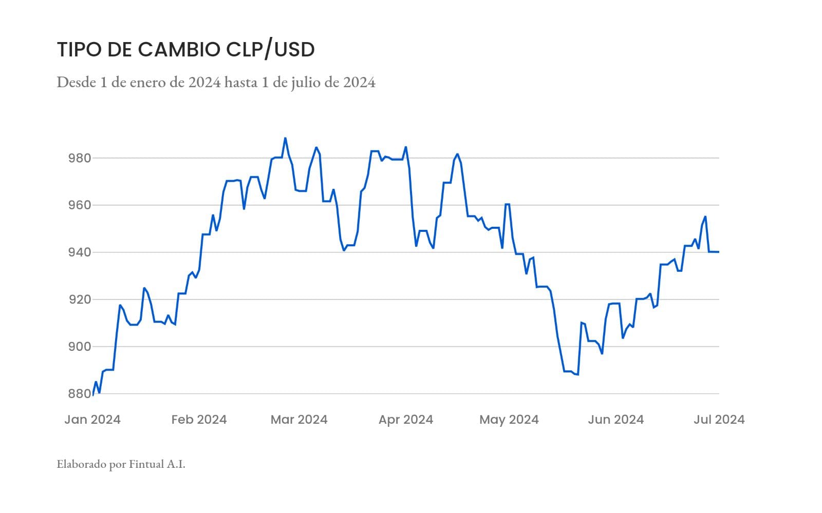 Mientras tanto, después de la fuerte recuperación entre mediados de abril y mediados de mayo, el CLP ha perdido fuerza frente al dólar. En junio el dólar subió cerca de 2,3% frente al peso chileno.