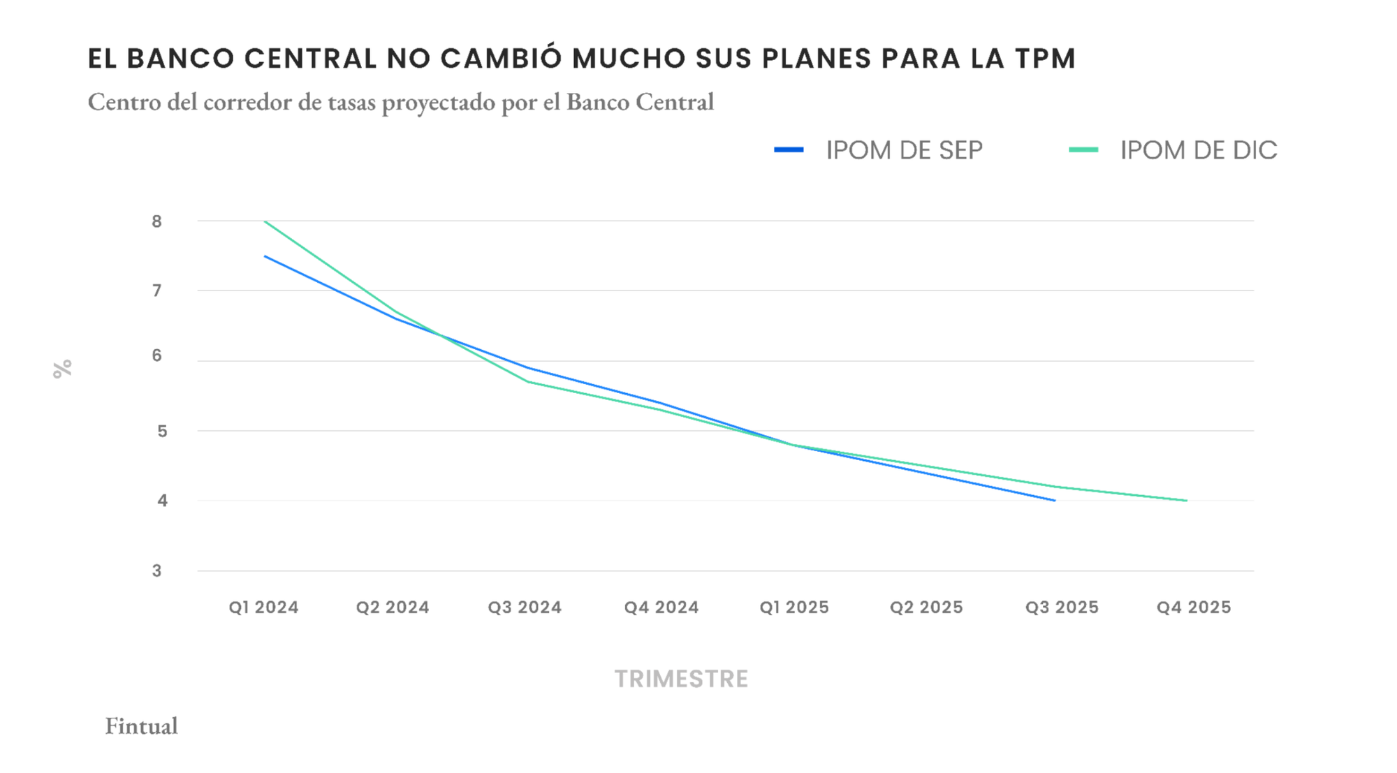 Como esperaba una pequeña mayoría del mercado y analistas, el Banco Central de Chile recortó la tasa de política monetaria (TPM) en 0.75 puntos porcentuales, para ubicarla en 8.25%. Esto es un mayor recorte comparado que en su reunión de finales de octubre, cuando recortó medio punto porcentual.