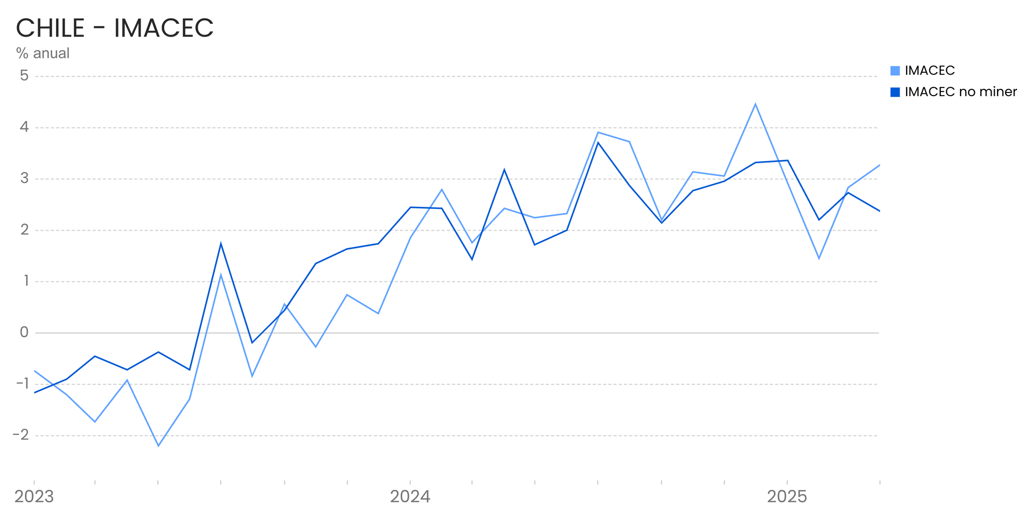 El Imacec de abril está en línea con las expectativas del Central que consideran un repunte en el crecimiento en el segundo trimestre. Las cifras son, dentro de todo, alentadoras, ya que muestran que el desempeño de la actividad se mantuvo sólido tras el recrudecimiento de las relaciones comerciales por parte de Estados Unidos, después del llamado “Liberation Day”, el 2 de abril.