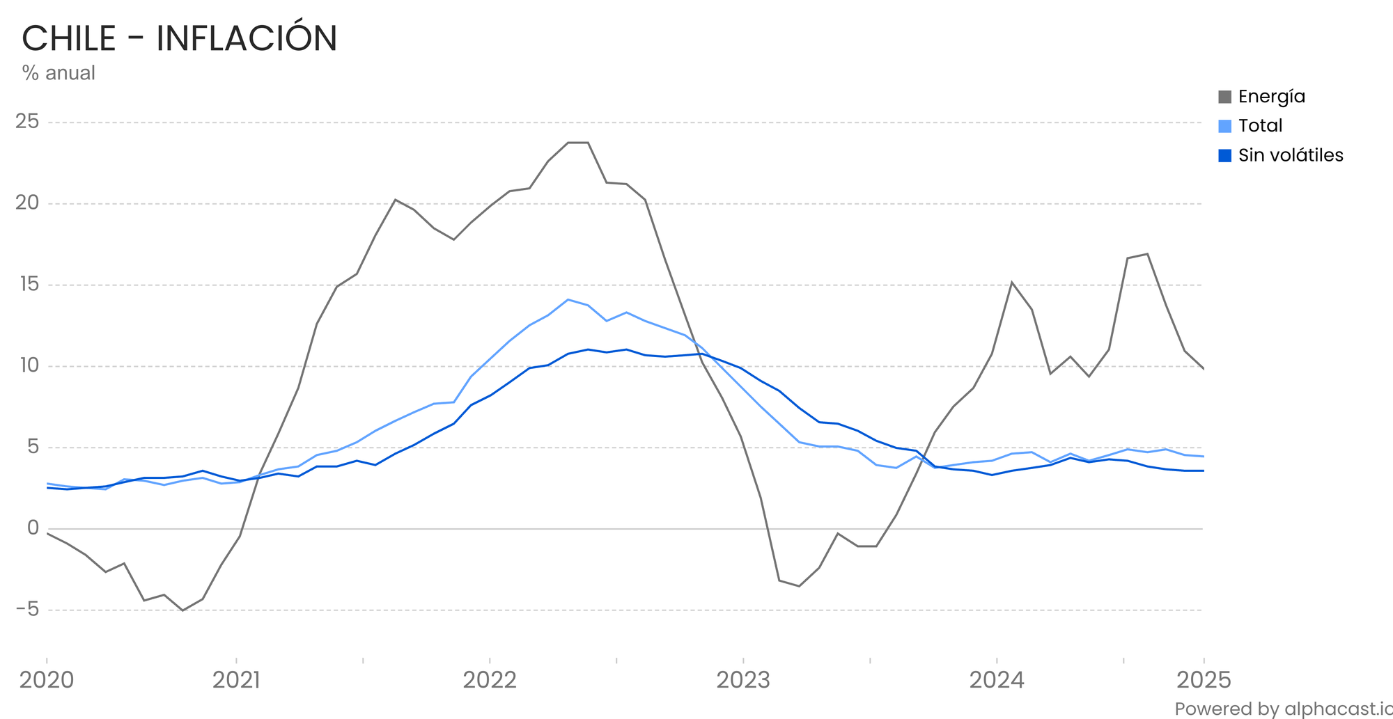 Por su parte, la inflación sin volátiles aumentó 0,4%, por encima de las expectativas y de su promedio estacional. Sin embargo, creemos que la lectura por parte del Banco Central será positiva. Esto se debe a que estimamos que los últimos registros de inflación sin volátiles han estado por debajo de lo que proyectaba la entidad en su IPoM de marzo, con un traspaso contenido de los ajustes tarifarios al resto de la inflación.