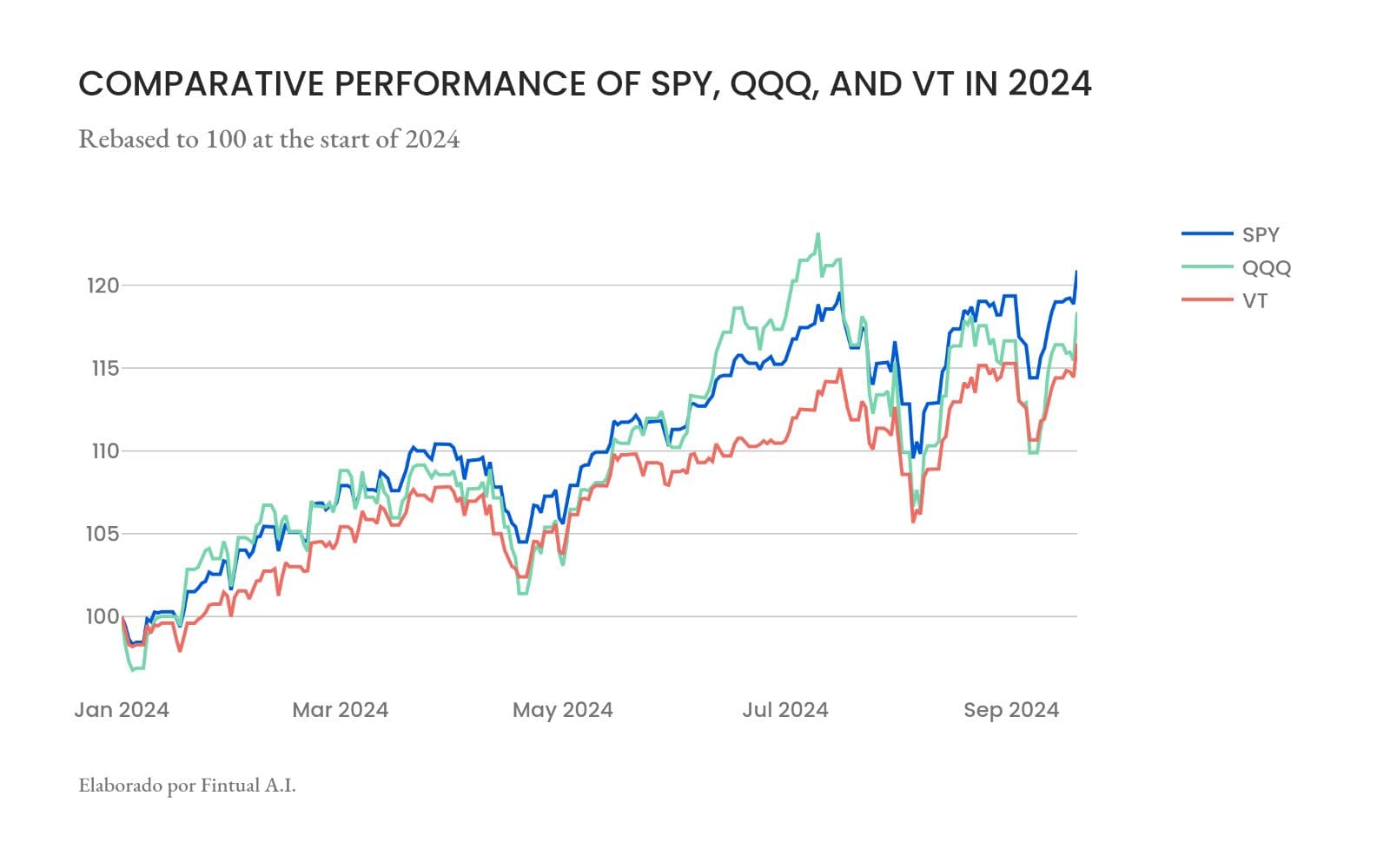 Sin embargo, el jueves se publicaron las solicitudes de desempleo, que fueron mucho menores a lo esperado. De hecho, registraron su menor nivel desde mayo. Con esto se reanimaron las expectativas de que la Fed podría lograr un aterrizaje suave de la economía y que no está actuando demasiado tarde en su recorte, y los mercados en general vieron ganancias muy significativas. El S&P500 ganó 1.7%, el Nasdaq anotó una subida de 2.5% y el VT de acciones globales ganó casi 1.8%.