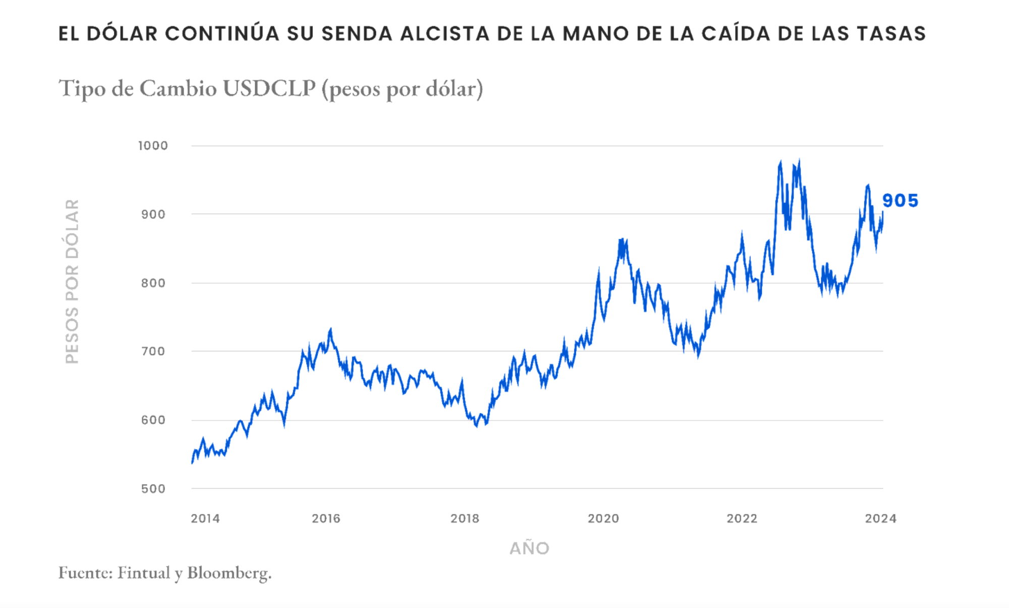 Por otro lado, la caída en las tasas de interés disminuye el atractivo del peso en relación al dólar. A esto hay que sumarle la fortaleza que han mostrado los datos del mercado laboral estadounidense, lo que en suma ha impulsado al dólar a ubicarse en niveles de 905.