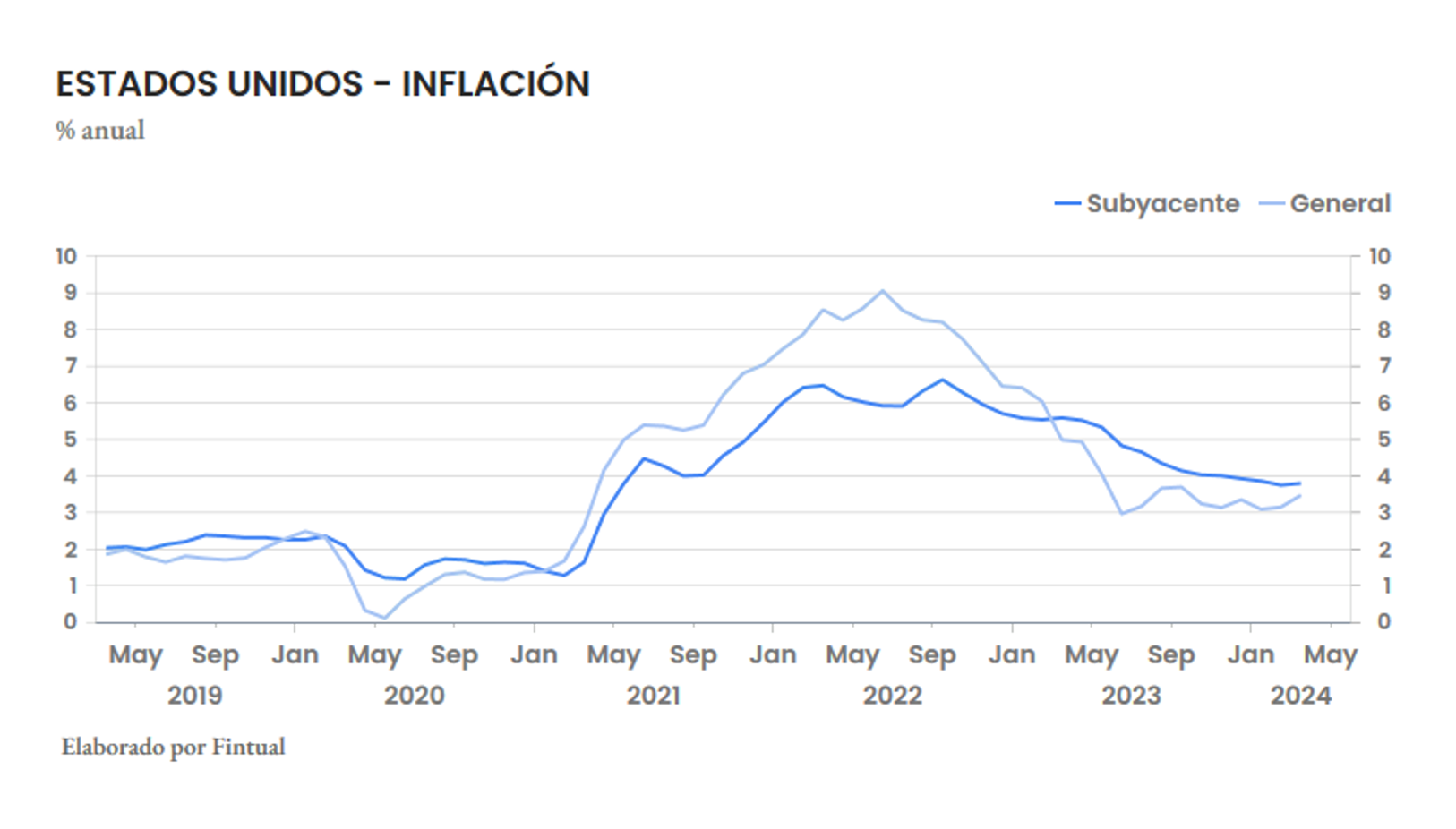 Si bien se ha avanzado mucho en la lucha para bajar la inflación, ambas medidas siguen por sobre la meta del 2% y la velocidad de caída es cada vez más lenta. A esto se agregan riesgos inflacionarios que han surgido recientemente ligados al aumento en los precios de las materias primas producto en parte del conflicto geopolítico y al colapso del puente de Baltimore.