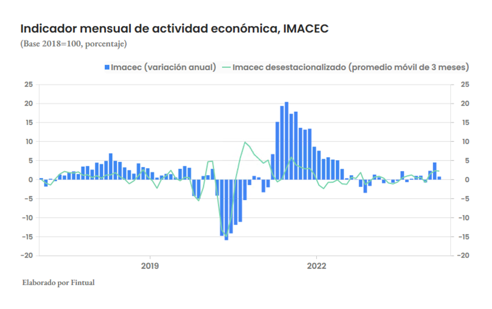 El lunes se publicó el Imacec de abril, y supimos que la actividad económica siguió desacelerándose. El Imacec se contrajo 0,3% en el mes, hilando dos meses de caídas.