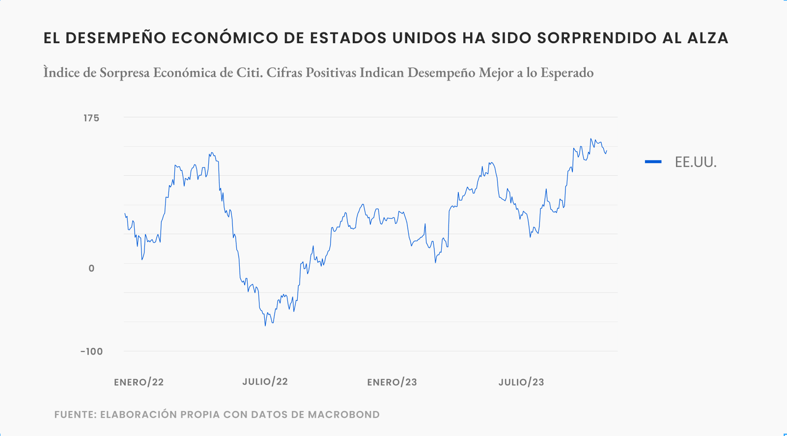 Los datos del sector consumo y manufacturero en Estados Unidos sorprendieron al alza. Y en esta misma línea, las minutas de la Fed (el banco central de ese país) dieron cuenta de que la entidad está más positiva sobre la actividad económica, y oficialmente ya no proyecta una recesión este año.