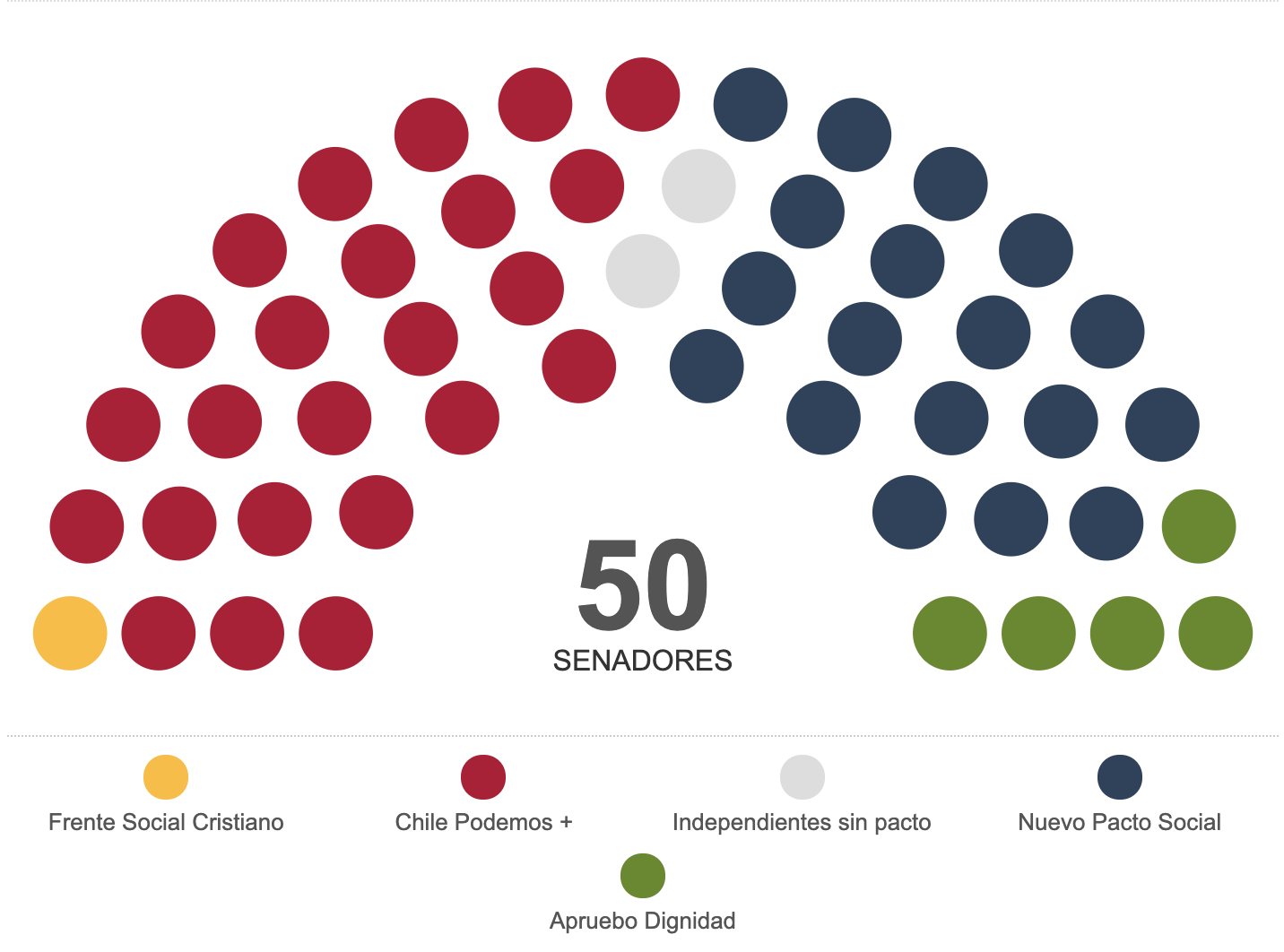 En el Senado las fuerzas de derecha obtuvieron 25 asientos, llegando al 50% del total, mientras que en la Cámara de Diputados llegaron a 68 de los 155 asientos (más, si se consideran los 6 puestos obtenidos por el Partido de la Gente).