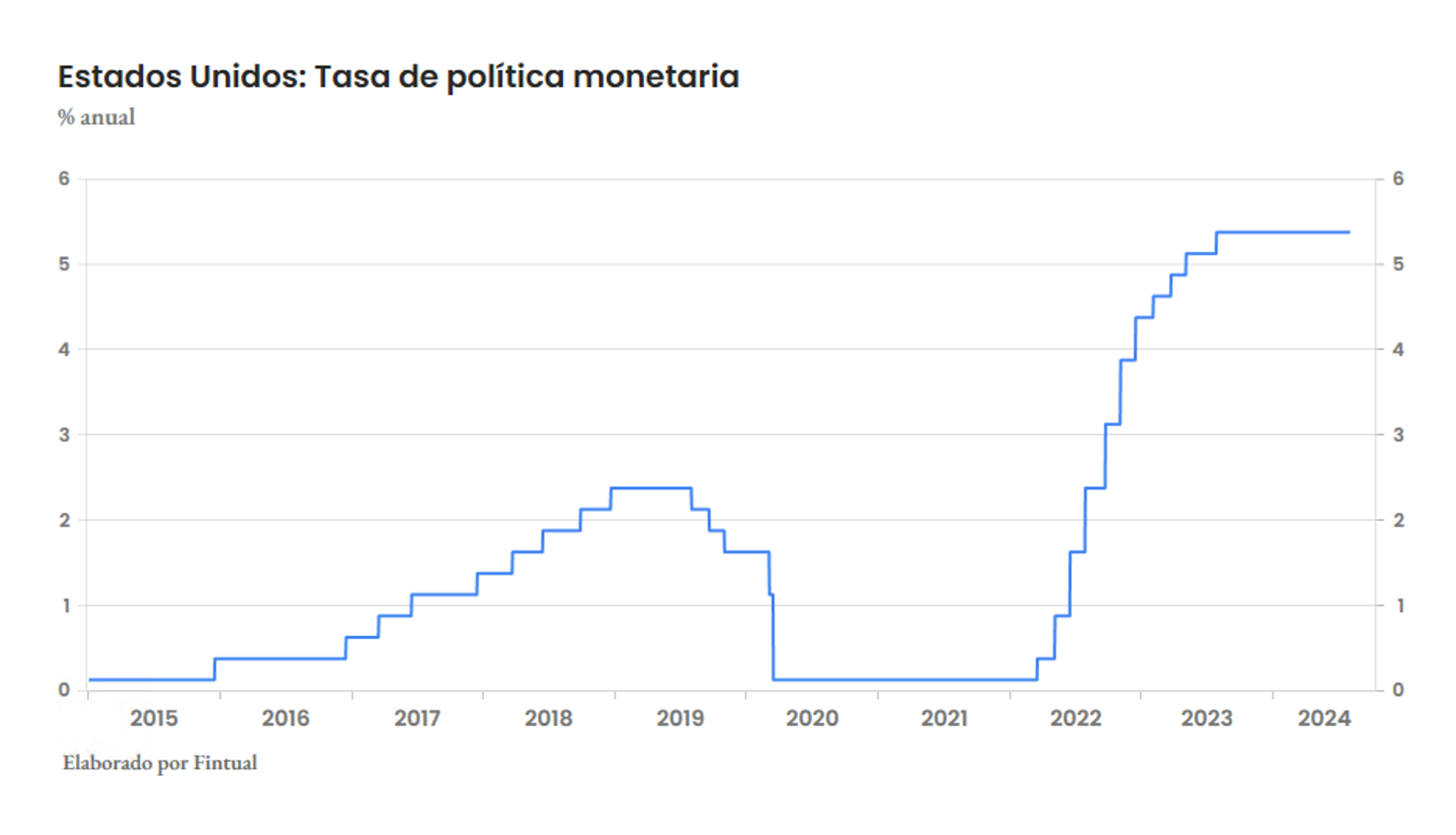 En el calendario macro, lo más importante a nivel global fue sin duda la reunión de política monetaria de la Fed de Estados Unidos, el miércoles. Como casi todo el mundo esperaba, la Fed mantuvo su tasa sin cambios en un rango de 5,25-5,5%.