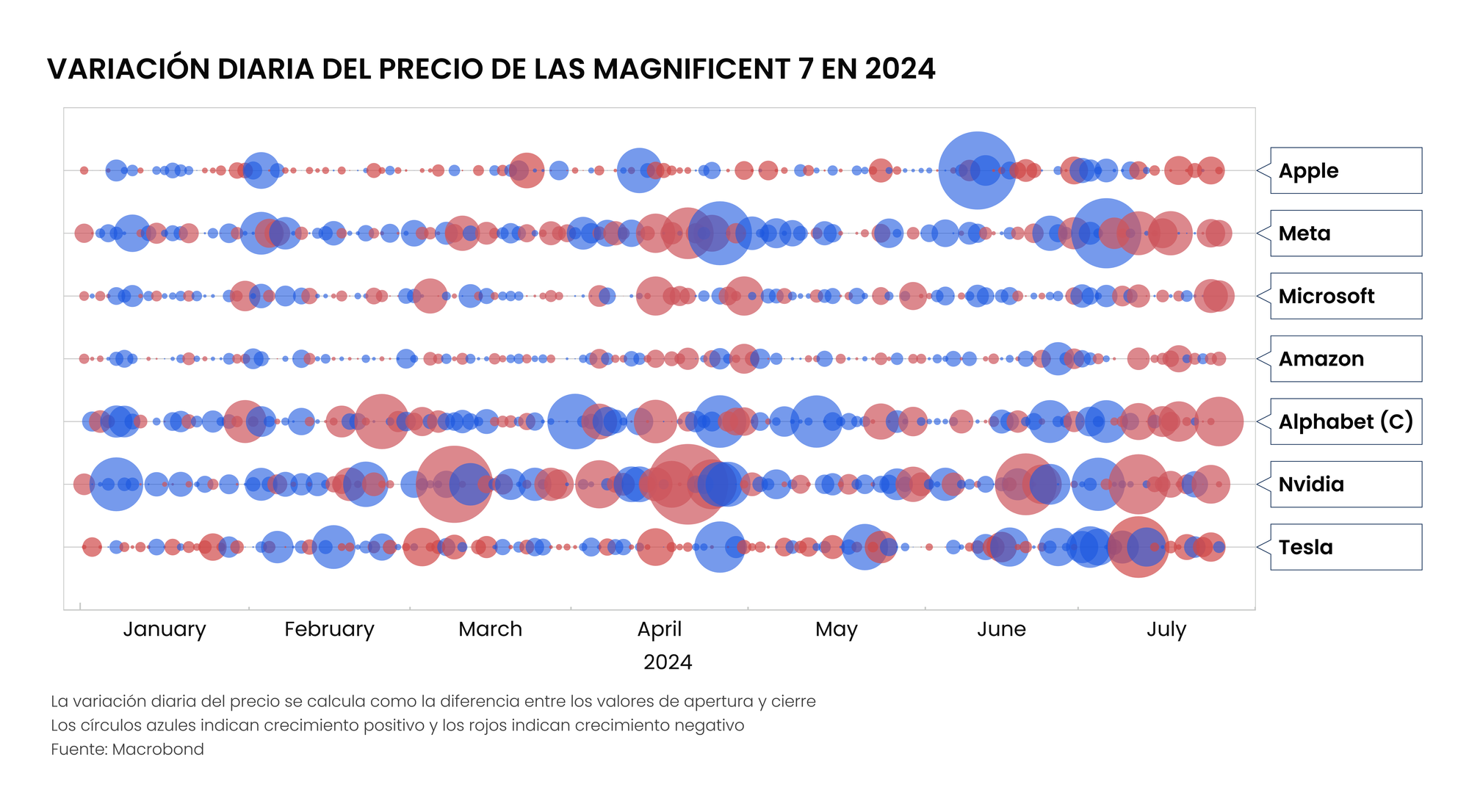 Los mercados extendieron la buena racha durante la primera mitad del mes de julio. El viernes 12 de julio el índice S&P500 alcanzó un nuevo máximo histórico de 5.650 puntos. Sin embargo, desde el miércoles 17 de julio el desempeño de las bolsas no ha sido bueno y el miércoles 24 fue un día particularmente negativo.
