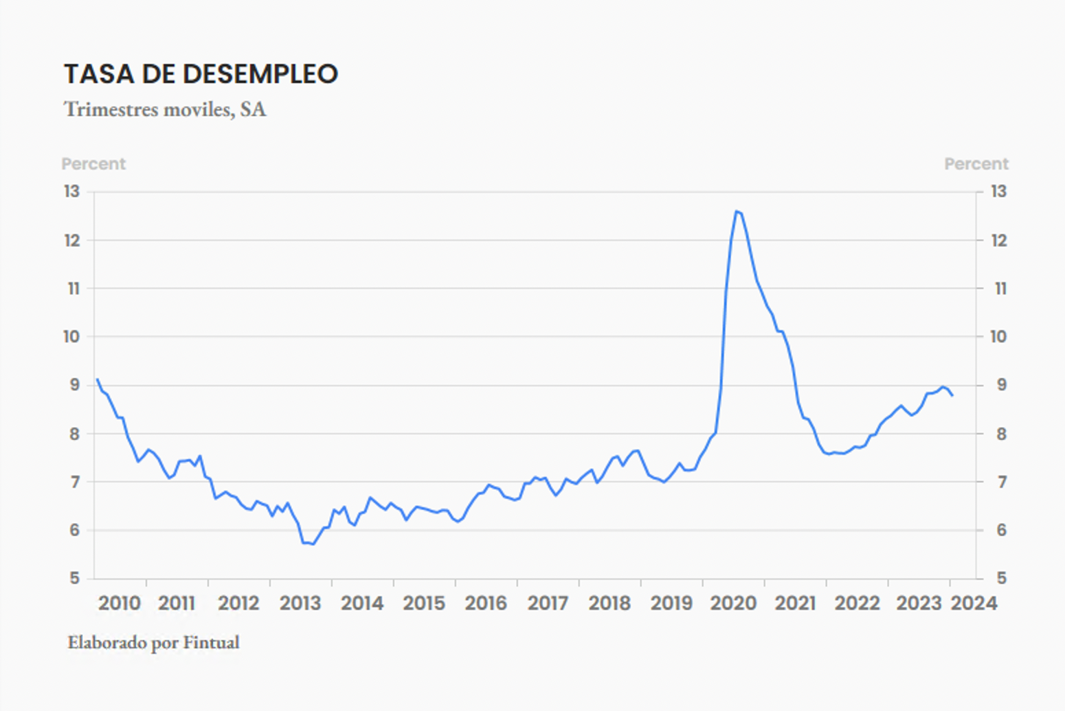 El miércoles se publicaron datos del mercado laboral en Chile. La tasa de desempleo bajó de 8.5% a 8.4%, en lugar de subir a 8.6% como esperaba el mercado. La mejora se explica por una mayor creación de empleo privado. Si bien la tasa de desempleo sigue alta y las condiciones del mercado laboral chileno siguen mostrando debilidad, es una buena noticia que las cifras estén mejorando en el margen.