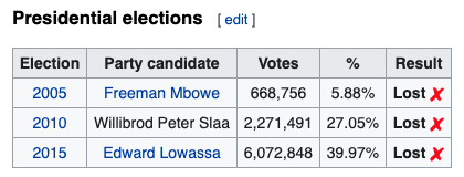 Esta tabla muestra cómo a pesar de perder siempre las elecciones, Chadema iba ganando cada vez más terreno: