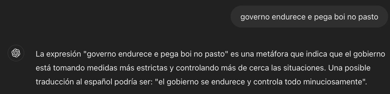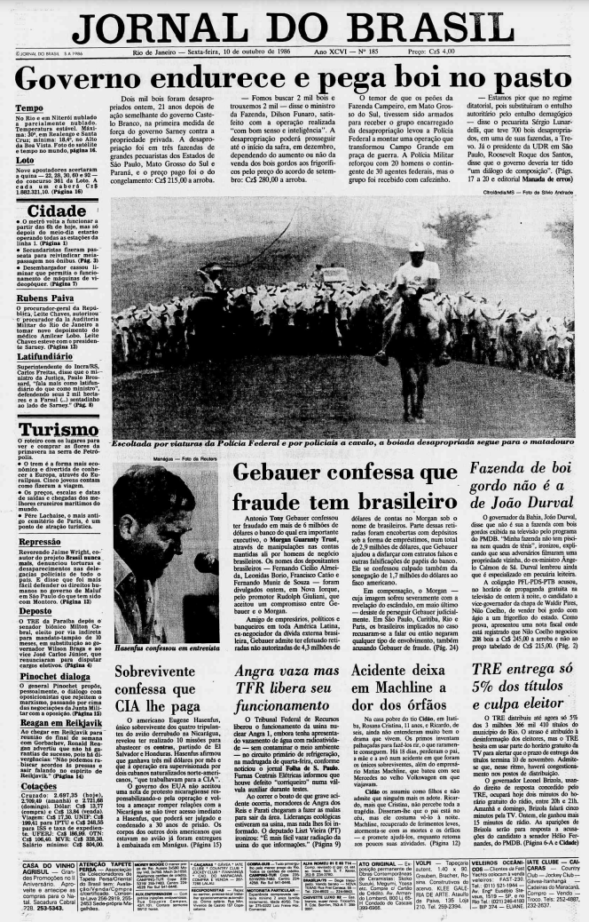 Pedí una traducción de este titular del Jornal de Brasil de 10 de Octubre de 1986 y ChatGPT creyó que era una metáfora. La traducción literal sería algo como: "el gobierno se endurece y atrapa al ganado en el pasto".