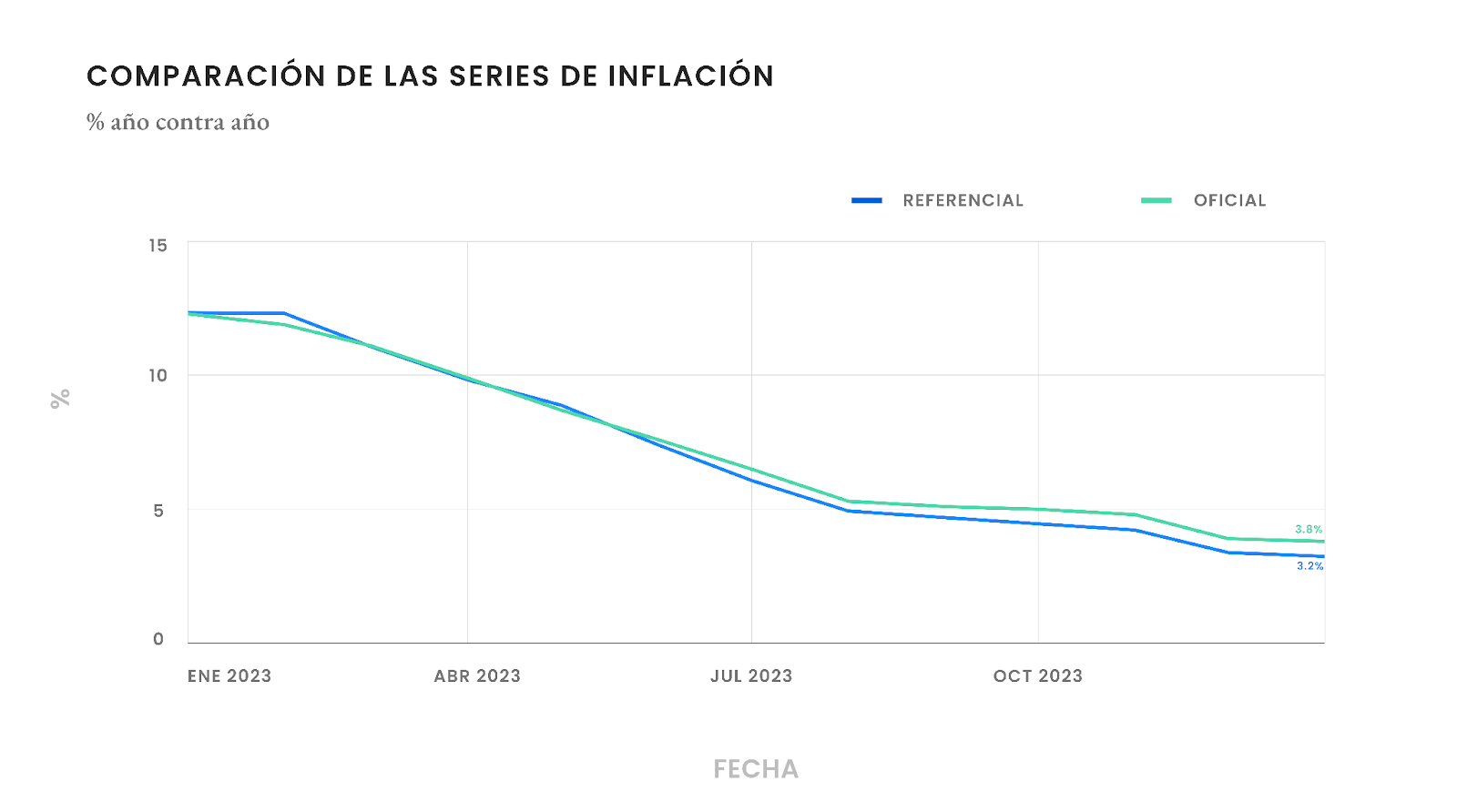 Durante este año el Central va a tomar en cuenta en sus análisis la serie referencial, pero siempre la tasa de inflación oficial va a ser la serie que considera la nueva canasta sólo a partir de 2024, que se conoce como "serie empalmada", publicada por el INE.
