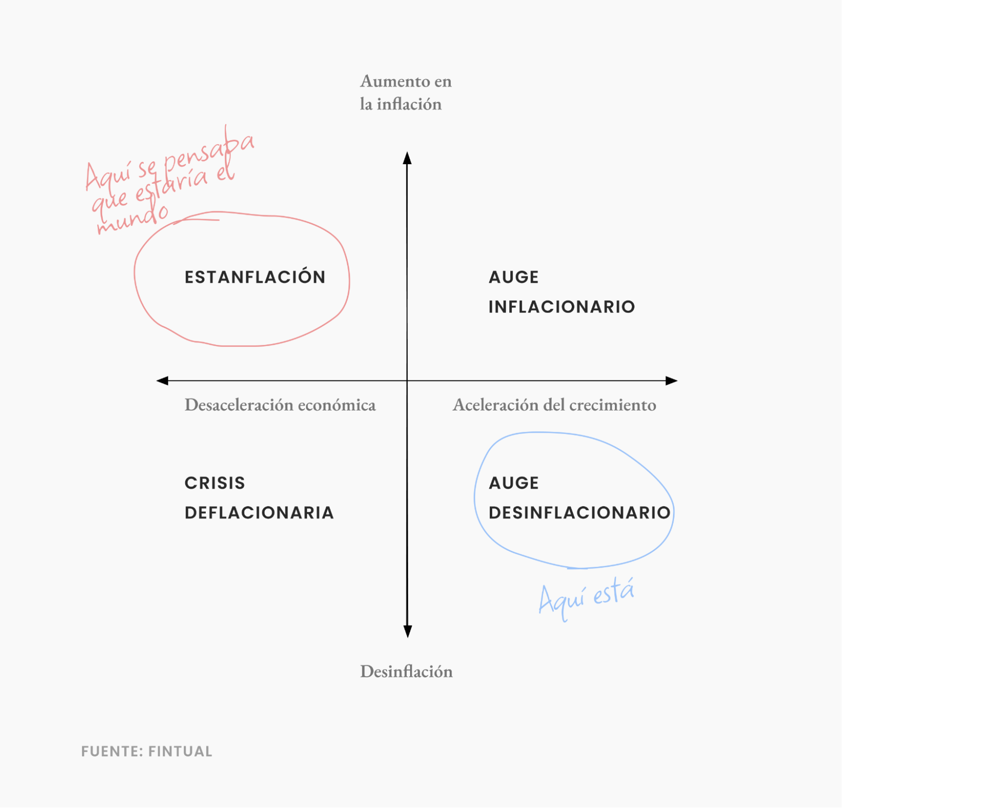 El primero es la preocupación de una caída abrupta de actividad. La llegada de la tan esperada recesión en los principales países desarrollados se ha postergado, y su magnitud se ha reducido. En lugar de la “estanflación” (inflación sin crecimiento) que muchos esperaban, vimos un “auge desinflacionario”. Es decir, las tasas de inflación cayeron en cierta medida, y la actividad se expandió.